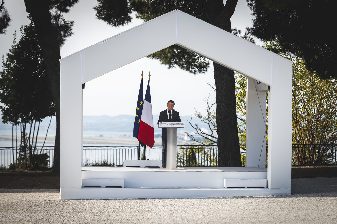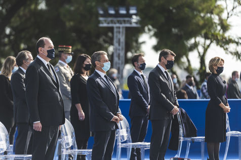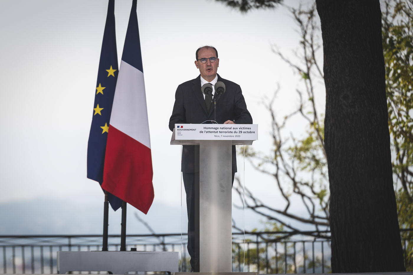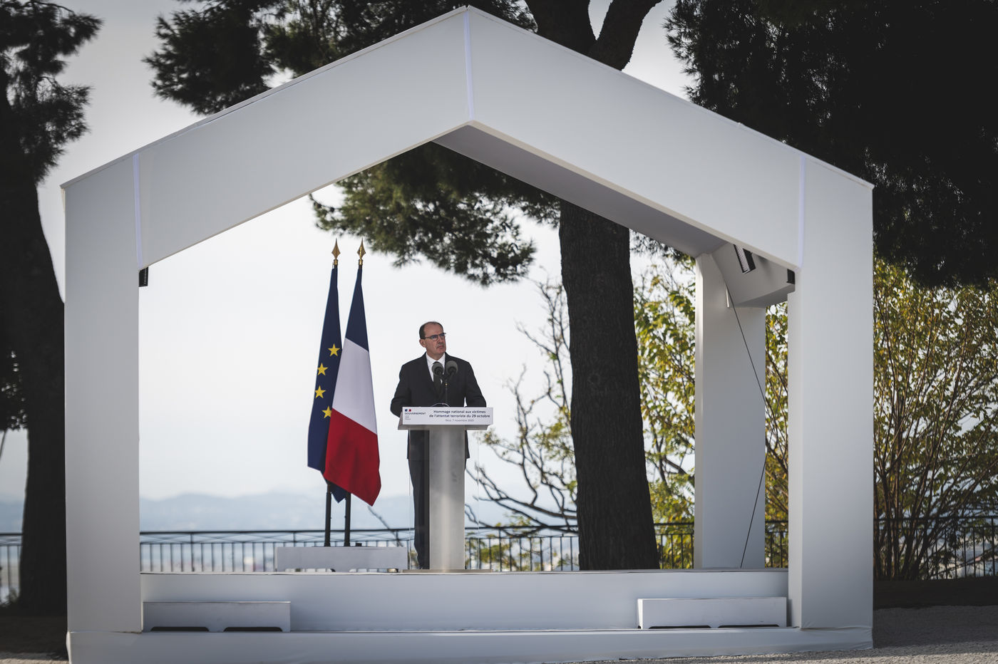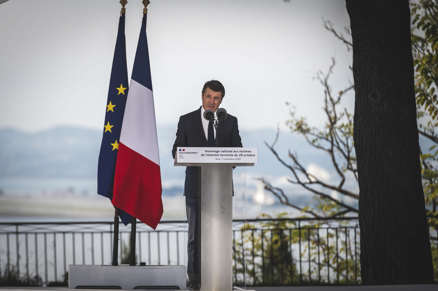 La nation à rendu hommage au trois victimes de l'attentat de Nice à l'occasion d'une ceremonie présidée par le premier ministre, Jean Castex, sur le colline du chateau de Nice, le 7 Novembre 2020.