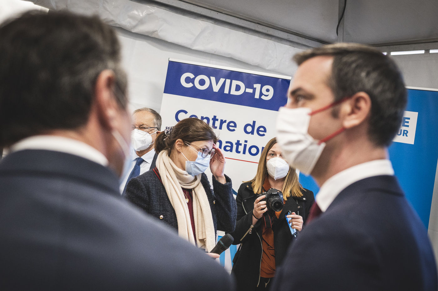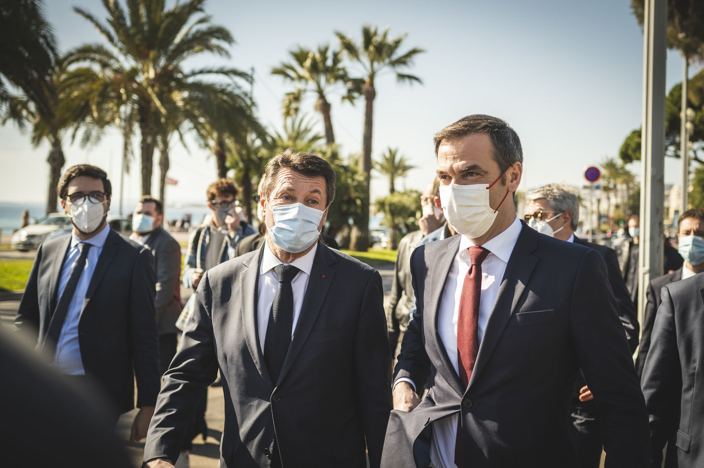 Dans le cadre de la degradation de la situation de l'épidemie à Nice, avec un taux d'incidence le plus élevé du pays, le ministre de la santé, Olivier Veran est venu en visite à Nice, accompagné par Christian Estrosi. Ils ont visité ensemble un centre de vaccination contre la Covid 19.
