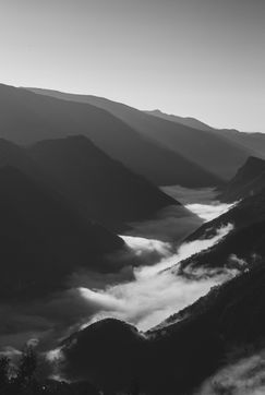 Black and white series of misty landscapes of the mountains of the Nicois back country.