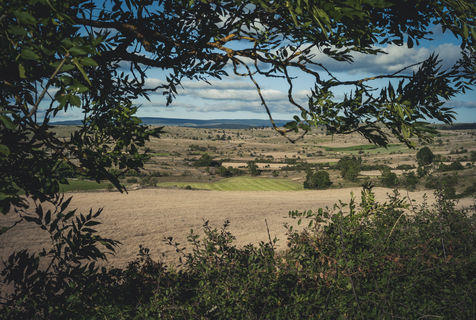 Images d'illustrations montrant des paysages du village de Sauveterre au coeur du departement de la Lozère dans la region Occitanie. Aout 2021.