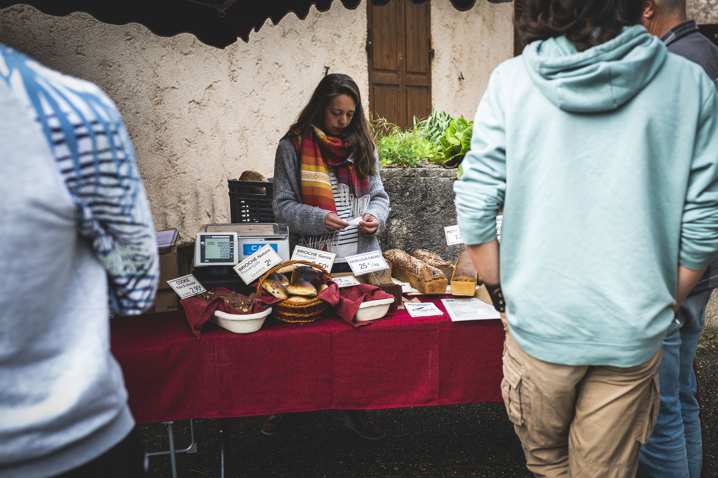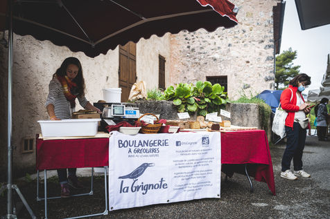 Commerçante de choix, Cecile vend ensuite ses créations sur les marches environnantes, ou comme ici directement au fournil de Gréolières.