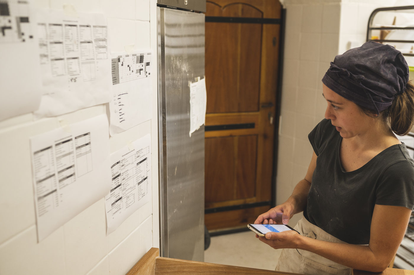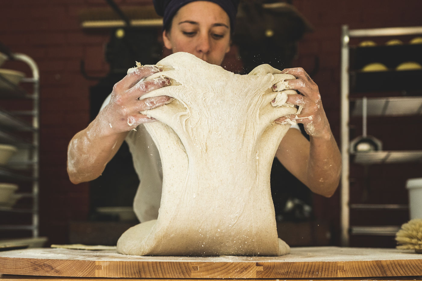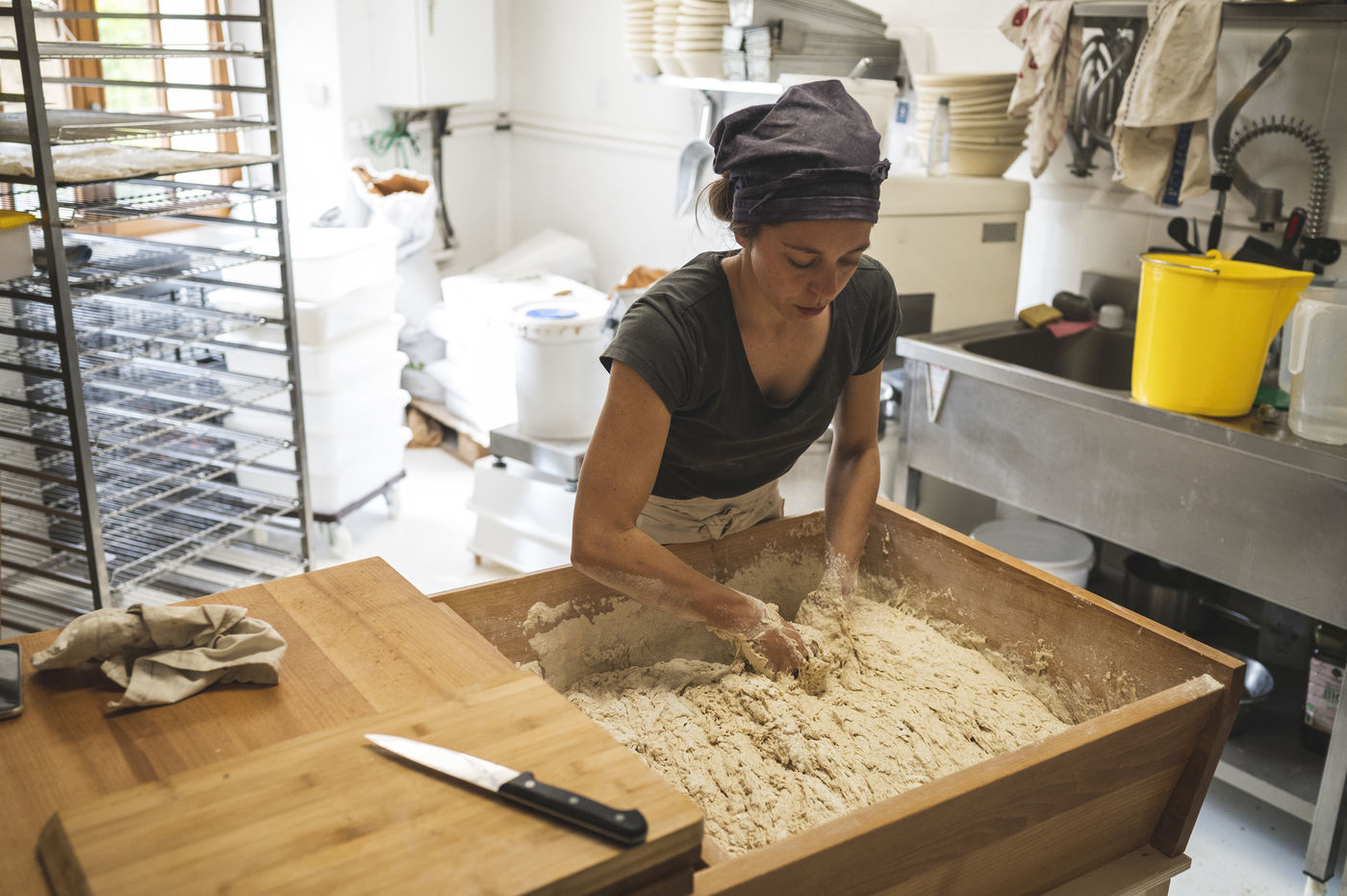 Tous les jours ou presque, elle assemble avec précision les éléments de notre pain quotidien, pour ensuite redémarrer ce four ancestral et y cuire ses pates bio.