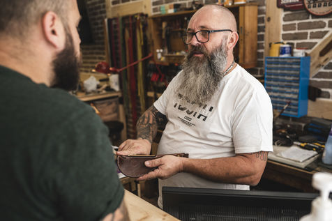 Thierry, Ancien Chauffeur poids lourds, devenu maroquinier à Antibes.