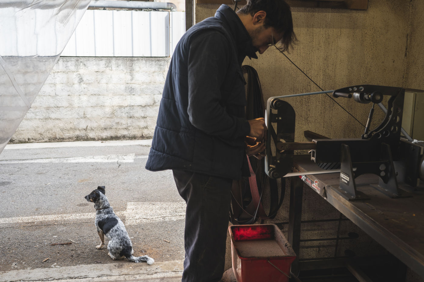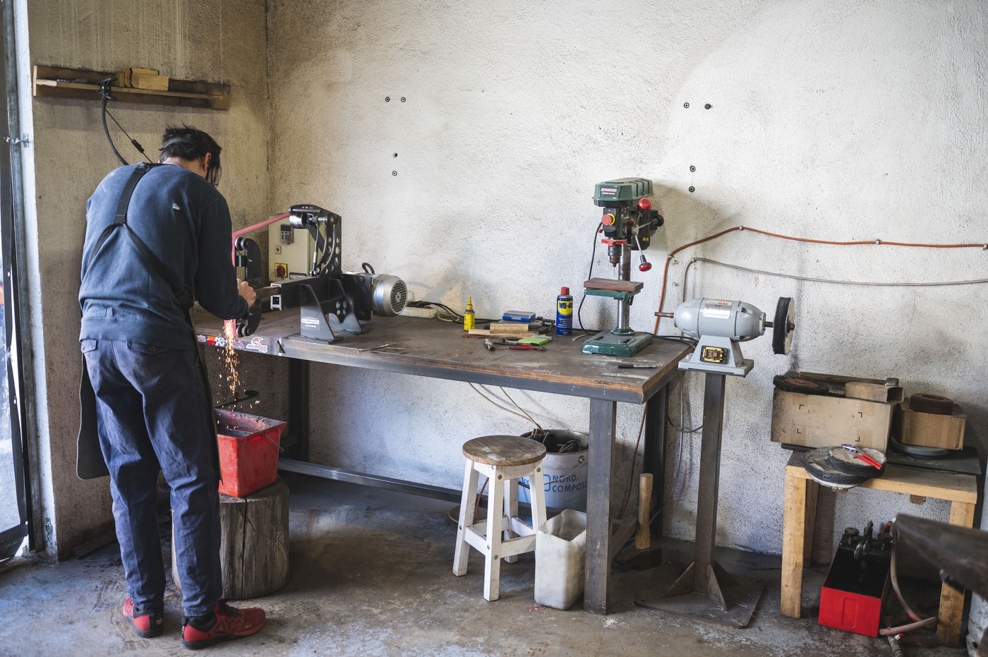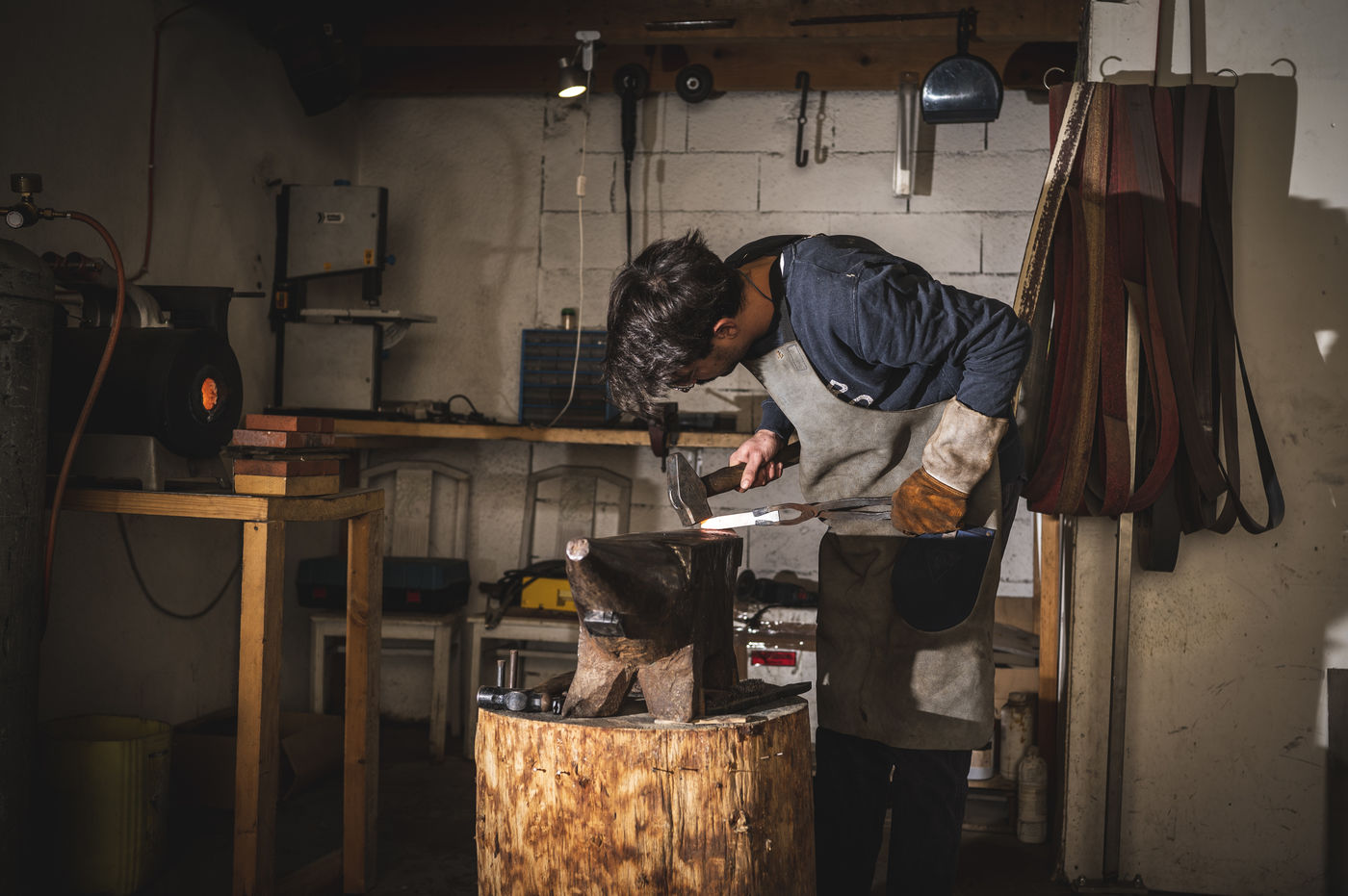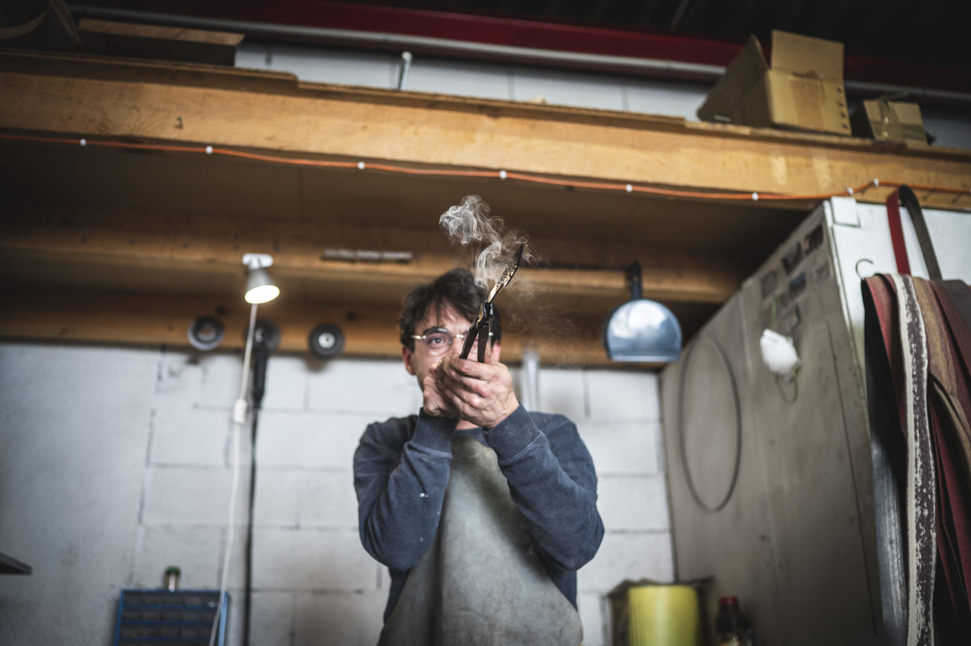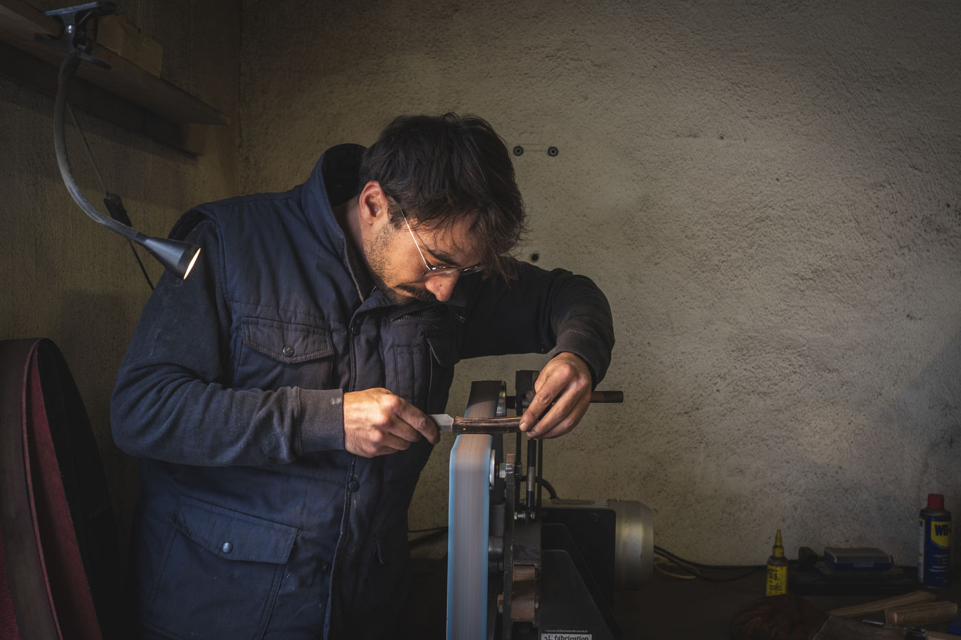 France, Biot, 2022-10-11. Reportage with Florian Gaillard, cutlery maker in his workshop located in Biot, in the south of France. After years spent in business consulting, Florian decided to reconvert to the craft and more particularly to cutlery.