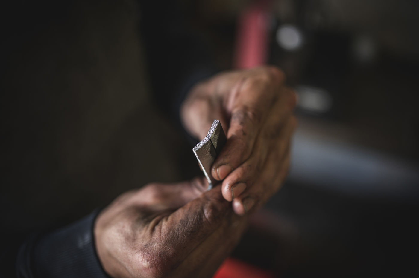 France, Biot, 2022-10-11. Reportage avec Florian Gaillard, coutelier dans son atelier situé à Biot, dans le sud de la France. Après des années passées dans le conseil aux entreprises, Florian a décidé de se reconvertir dans l'artisanat et plus particulièrement dans la coutellerie.