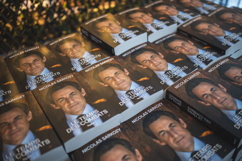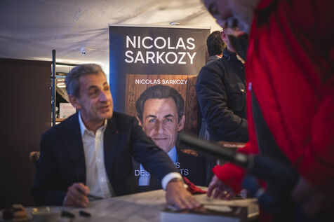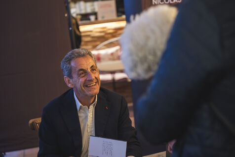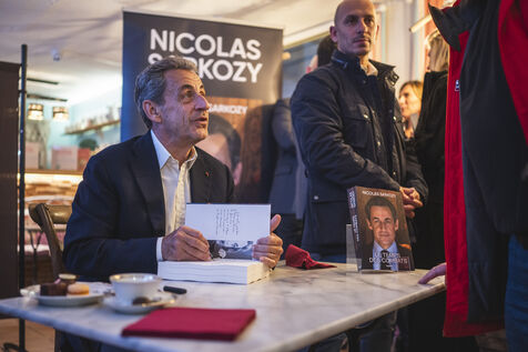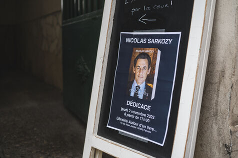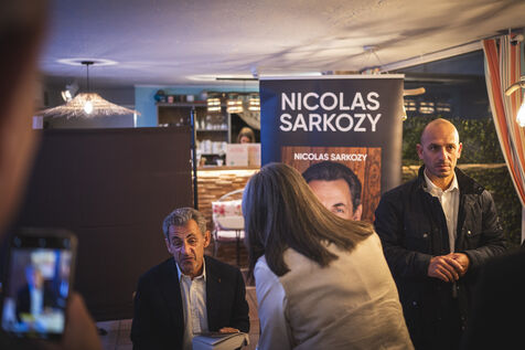 Former President Nicolas Sarkozy at a book signing for his latest book, in Cannes, on November 2, 2023.