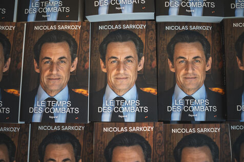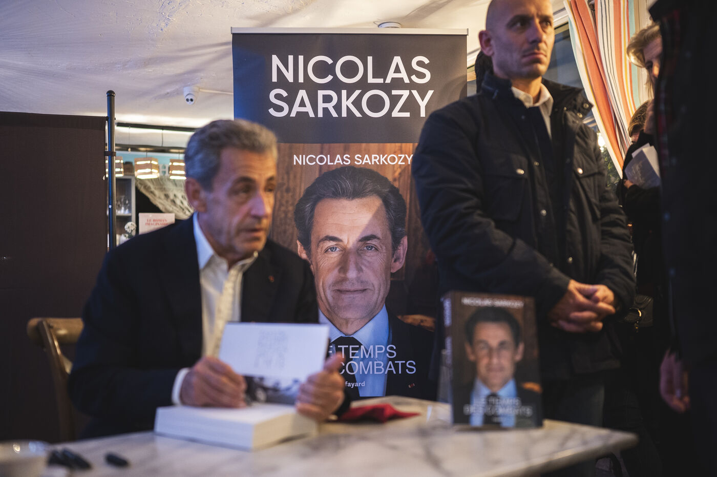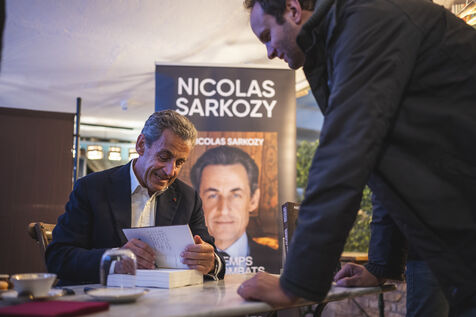 Former French president Nicolas Sarkozy signed his latest book, "Le temps des combats", published by Fayard. Session organized at the Cannes bookshop "Autour d'un livre" on November 2, 2023 in Cannes.