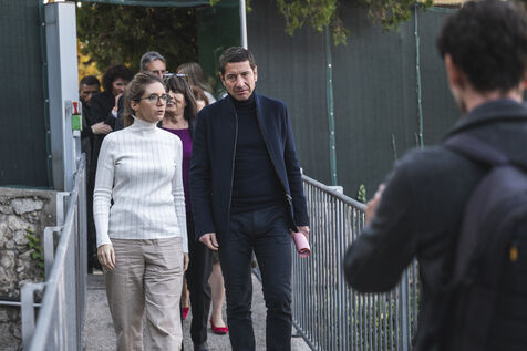 FRANCE, Cannes, December 15, 2023. The French Minister for Solidarity and Families, Aurore BERGE, visits the Mayor of Cannes, Davis LISNARD.