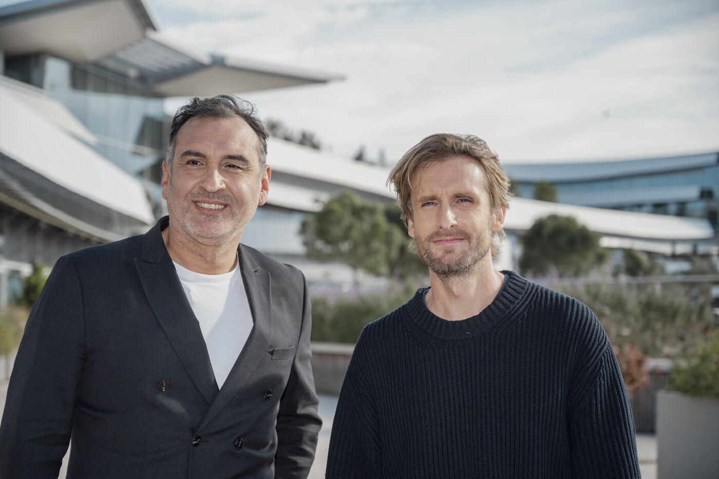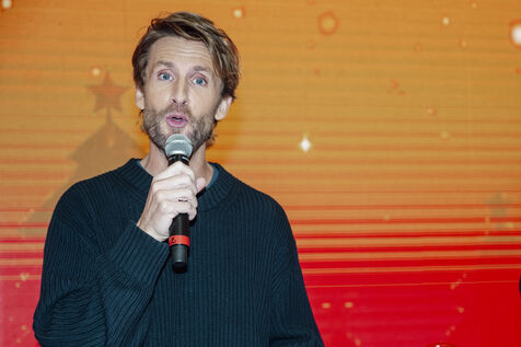 French actor Philippe Lacheau and Frédéric Llorca, director of Cap 3000, at the launch of the Christmas festivities at the CAP 3000 shopping center, based in Saint Laurent du Var, in the Alpes Maritimes.