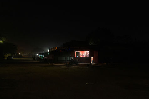 When I arrived in Burkina Faso, it was the first time I had set foot in West Africa, without really knowing what to expect. And from the moment I arrived, from the first night I spent in Ouagadougou, I was fascinated by the nocturnal environment. The district where I am staying, Gounghin, is almost completely in darkness because there is no public lighting. Only the headlights of the cars, the lights of the few shops and bushes here and there, sometimes a small fire in the middle of the street where rubbish is being burnt, make it possible to distinguish people, what is happening just next door or a little further away. Everywhere around me strange, mysterious pictures appear. Life is revealed in fleeting snatches, the different light sources instinctively leading the eye to scan the scene, going from one light to another. Looking for what is hidden, scrutinizing. Various feelings permeate me. Because the atmosphere that is created from what the night reveals to us, lets us see, can just as easily bring us a feeling of tension, electricity, or even calm.