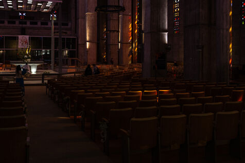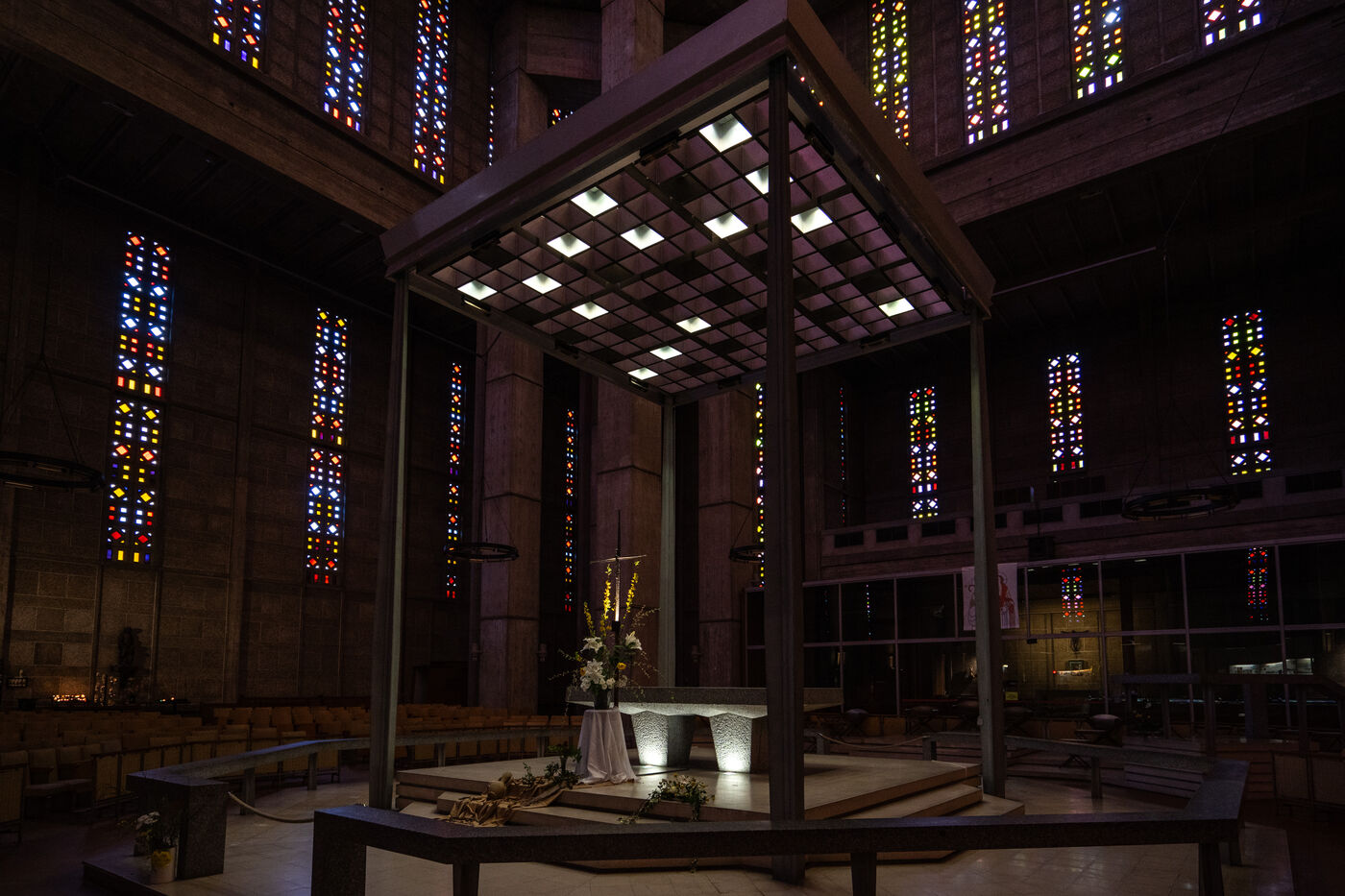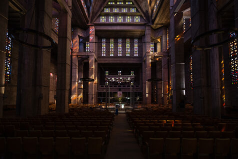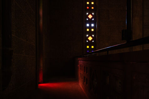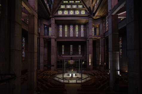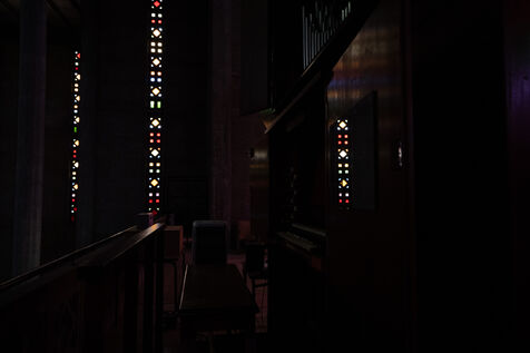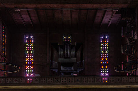 The stained glass windows (some 12,568 pieces) were created - and mouth-blown - by the artist Maguerite Hure herself. Deliberately eschewing figurative religious representations, the artist chose to use colour alone, giving the building a luminous and aesthetic unity that is inseparable from its spiritual atmosphere.