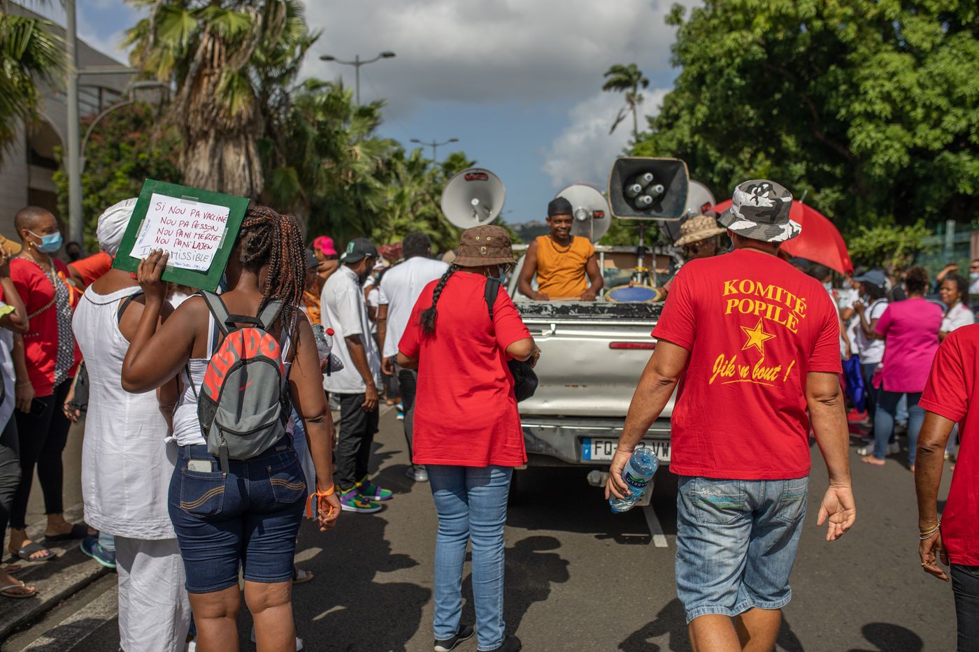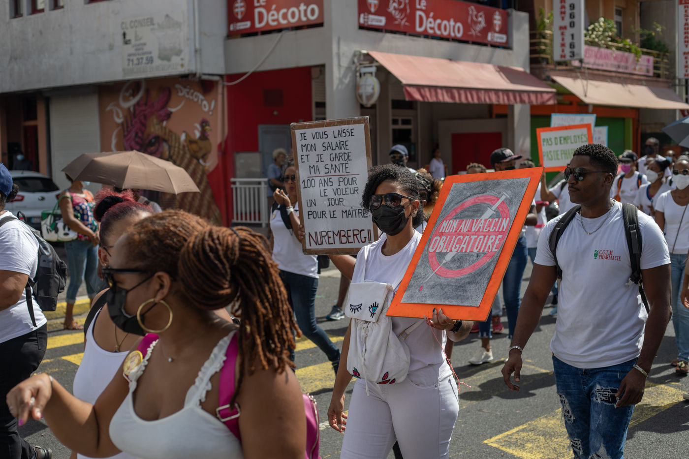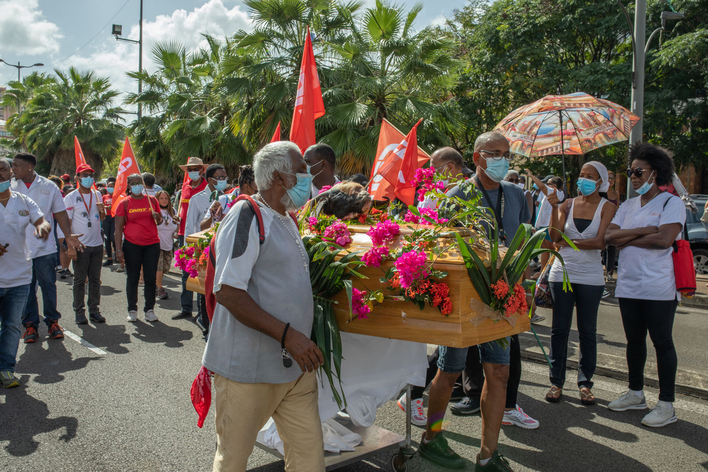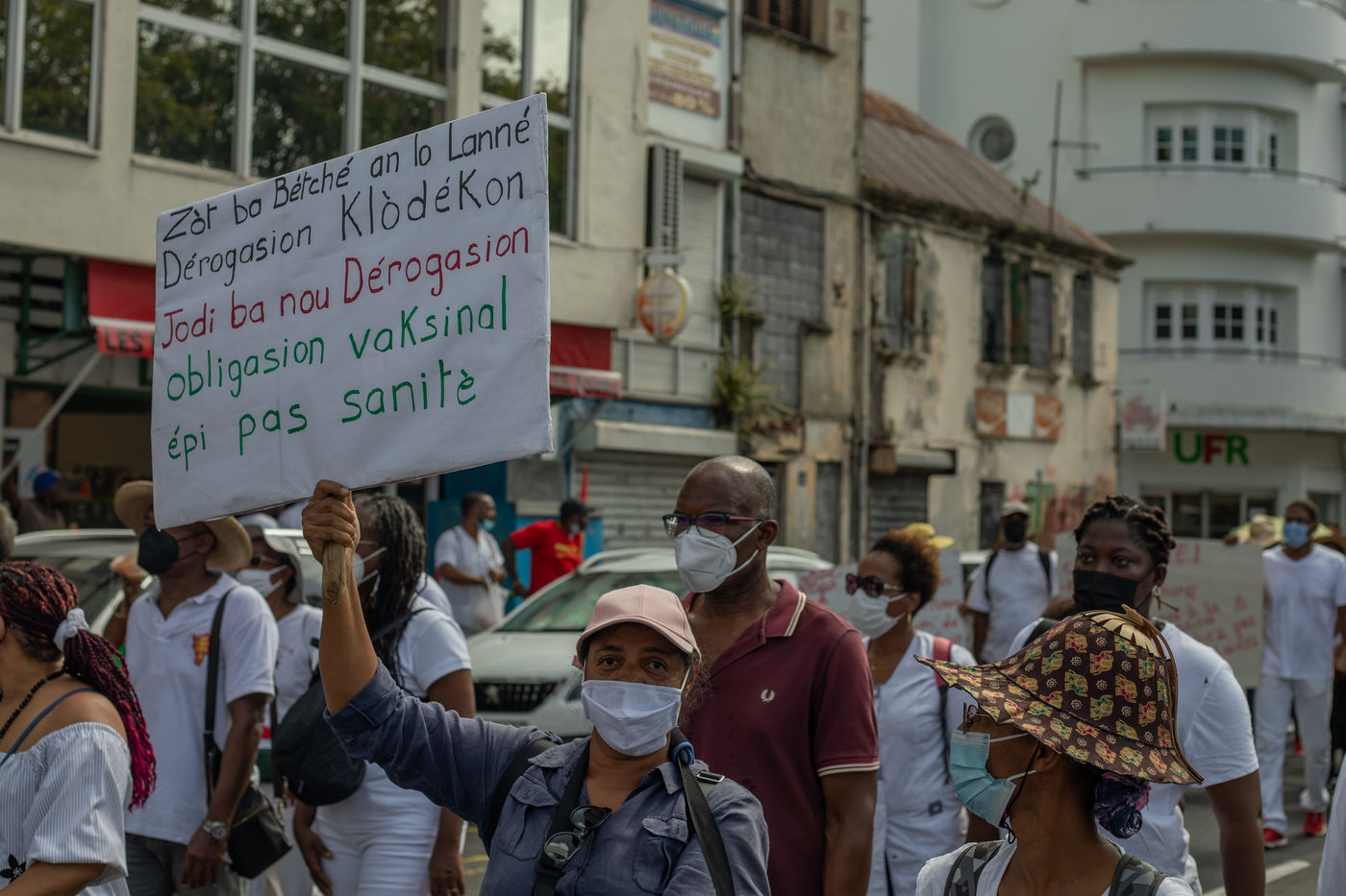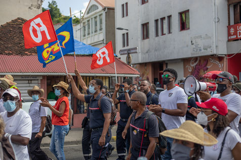 L'intersyndicale de la santé a appelé à une grève générale à partir du 25 octobre, date à laquelle plus de mille personnes, majoritairement des professionnels de la santé, se sont rassemblées pour marcher dans les rues de Fort-de-France en protestation au pass sanitaire et l?obligation vaccinale.