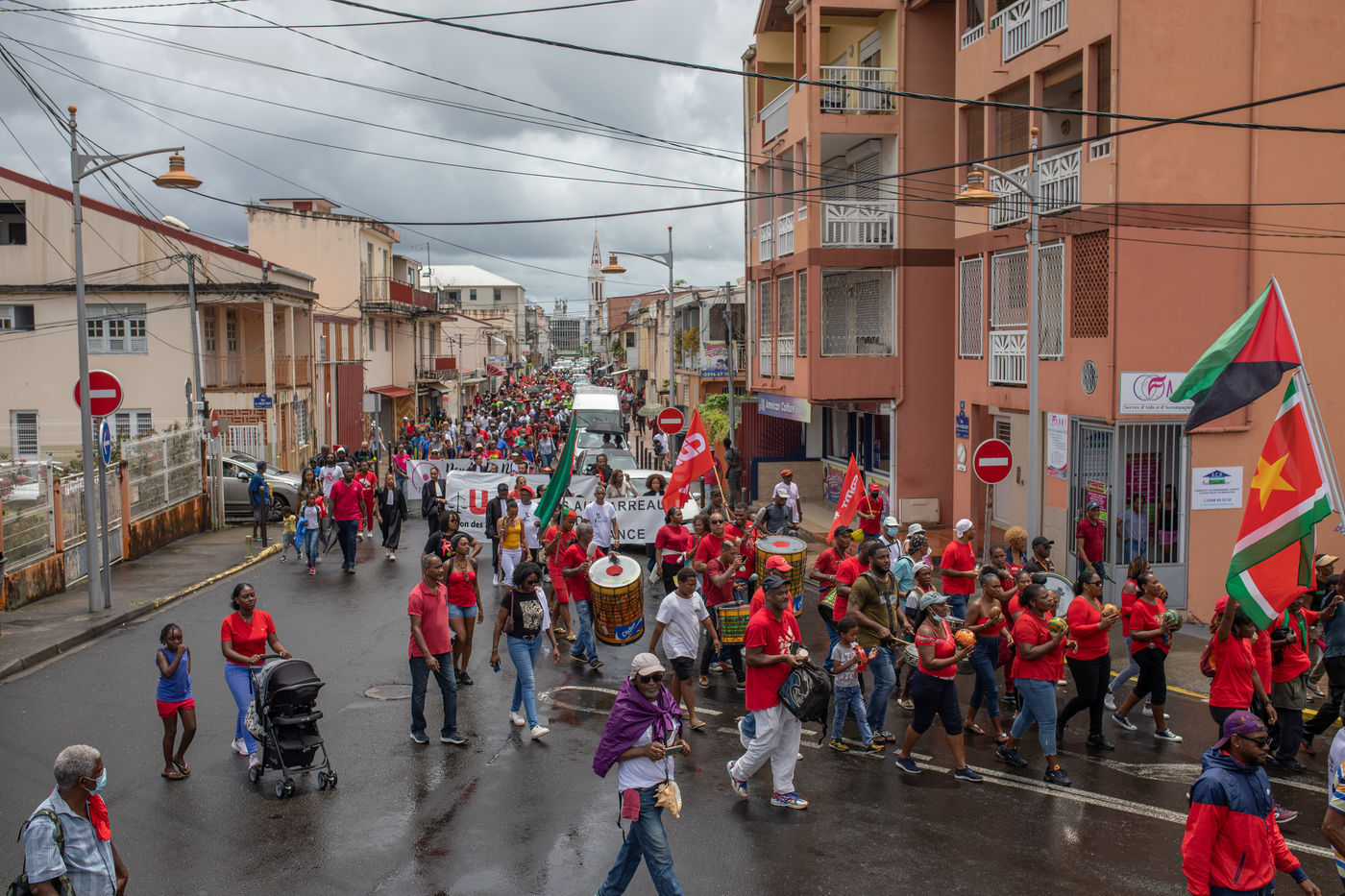 The gathering, which was intended to be "unitary" by the organizers, was given in a symbolic place this Saturday, May 28: place du Neg Mawon in Lamentin (center of the island). Scheduled to start at 9 am, the march through the streets of the city finally began around 10:30 am, despite the frequent showers, to end at the municipal stadium Georges Gratiant of Lamentin.