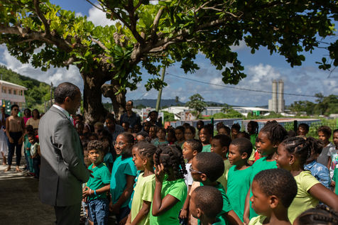 Arriving Thursday afternoon, October 6, the Minister of National Education and Youth Pap Ndiaye first visited an elementary school in Fort-de-France. The next morning, he visited a middle school in Lamentin before inaugurating the Schoelcher high school in Fort-de-France. Then, in the afternoon, he went to the commune of Robert (on the Atlantic coast of the island) to visit the Edgard Labourg application school, which has been awarded the eco-school label, and to attend a presentation on the local public establishment for agricultural education and vocational training located next door.