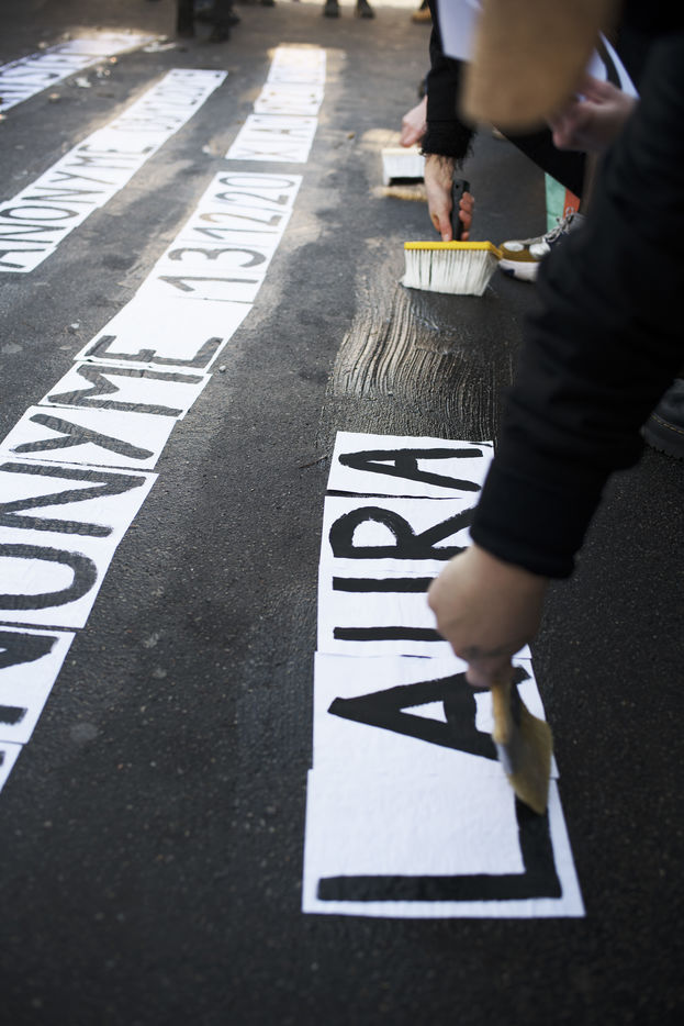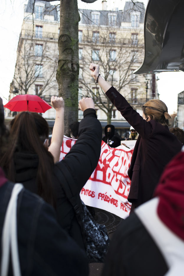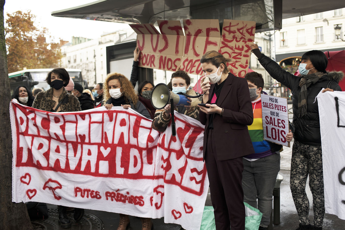 Rassemblement pour la journée mondiale de lutte contre les violences faites aux travailleur-euses du sexe à Paris. Place Pigalle, le 17 décembre 2020.