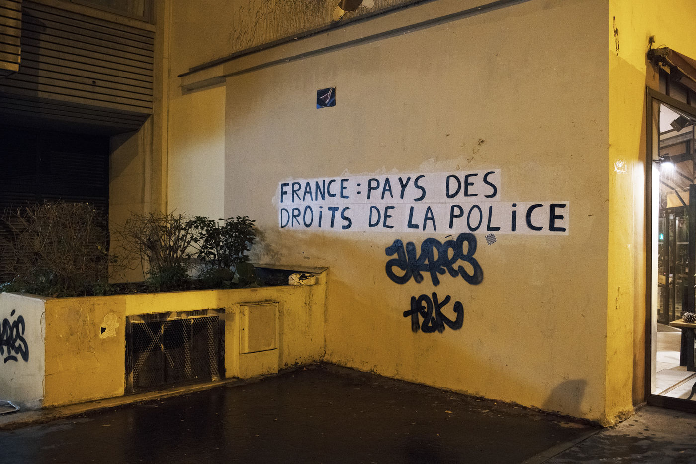 On December 19th, members of the Collages Féminicides Paris collective posted messages on the walls of the 11th arrondissement about the "global security" law and police violence.
