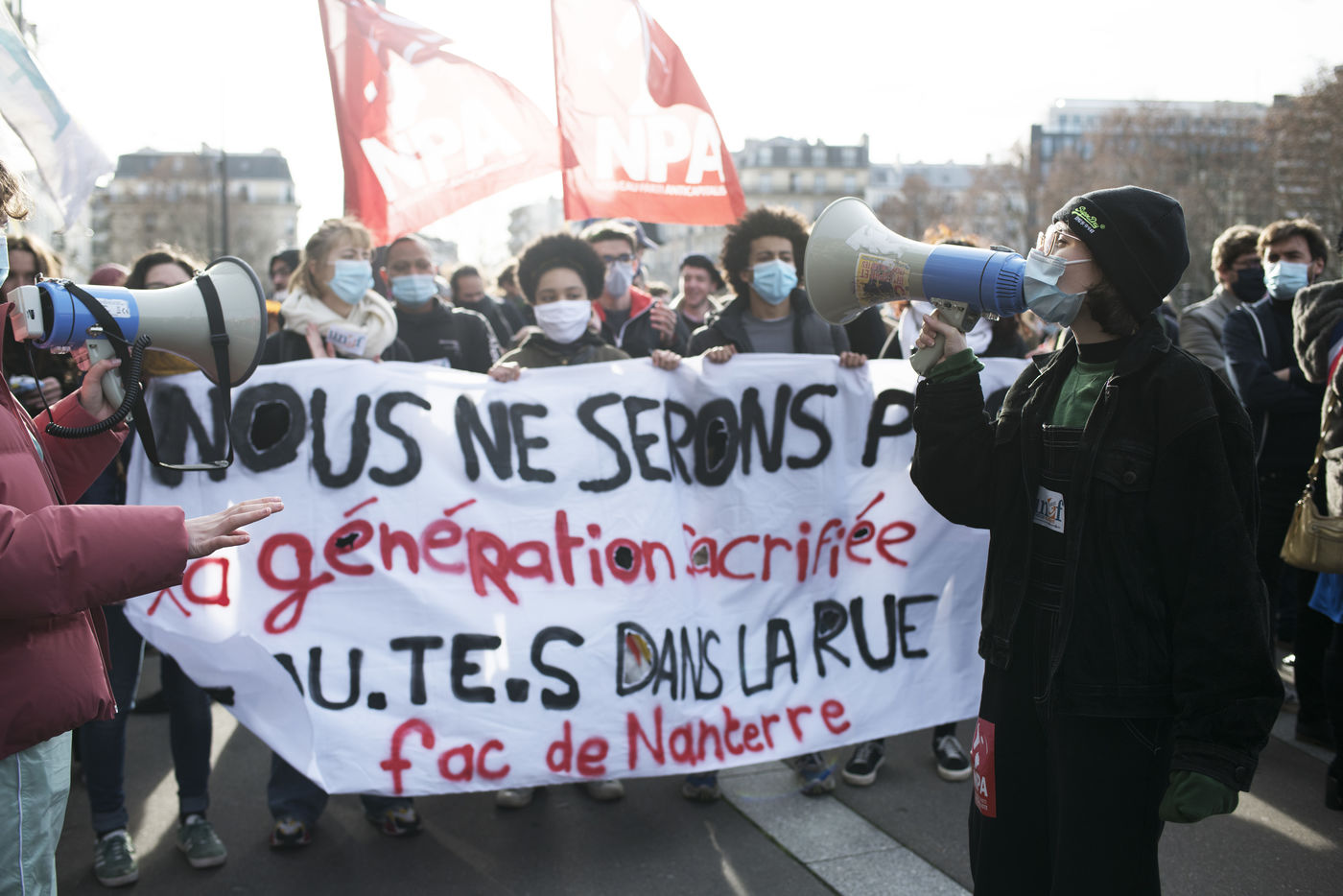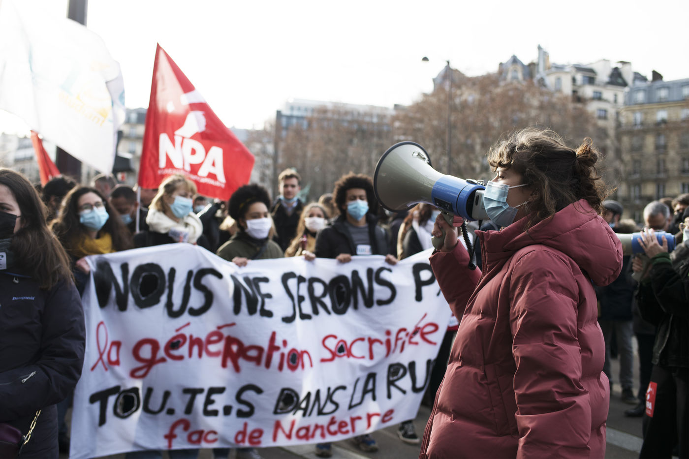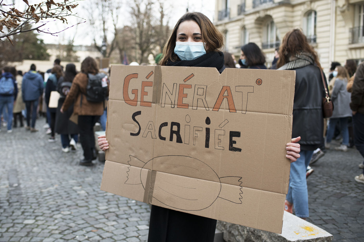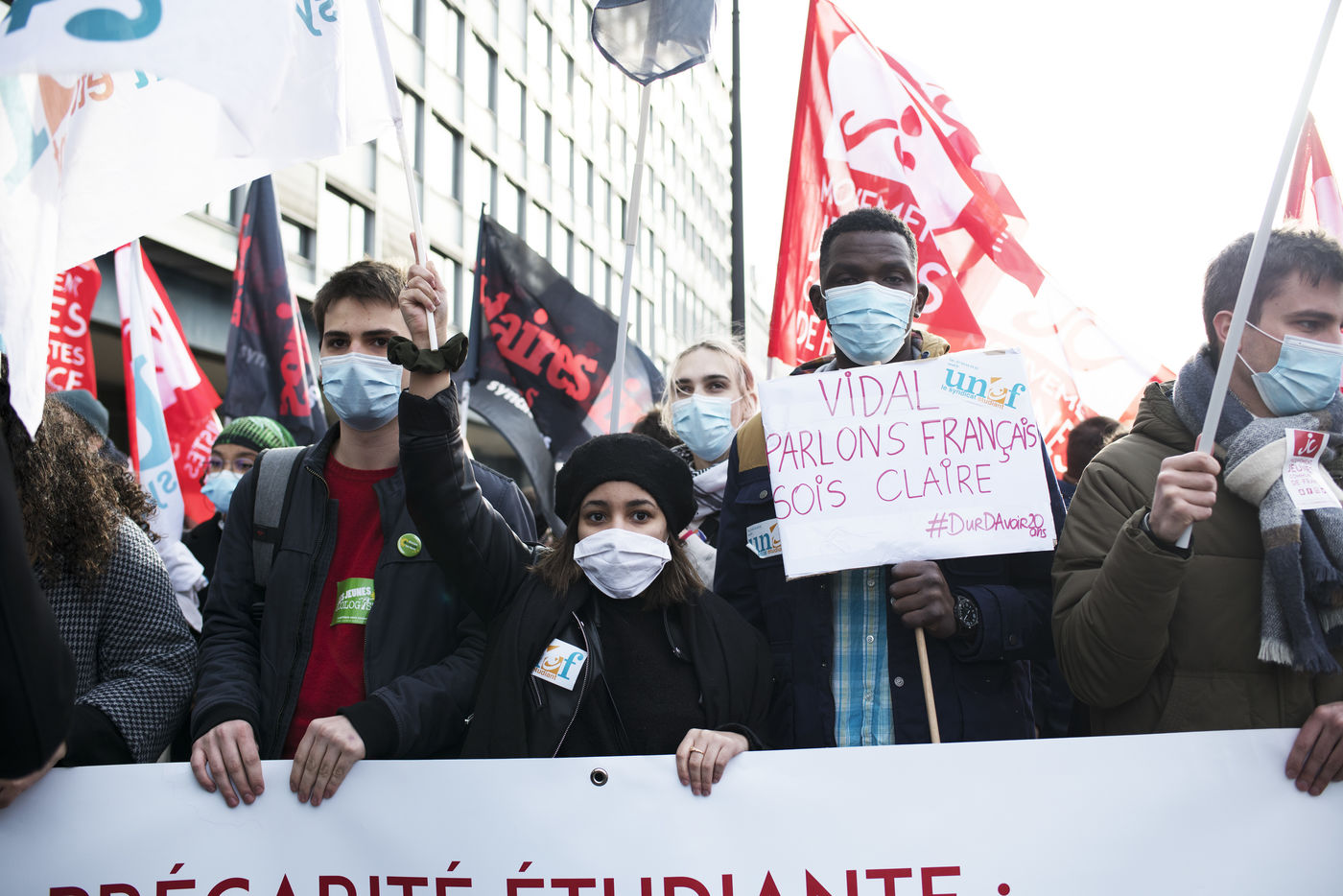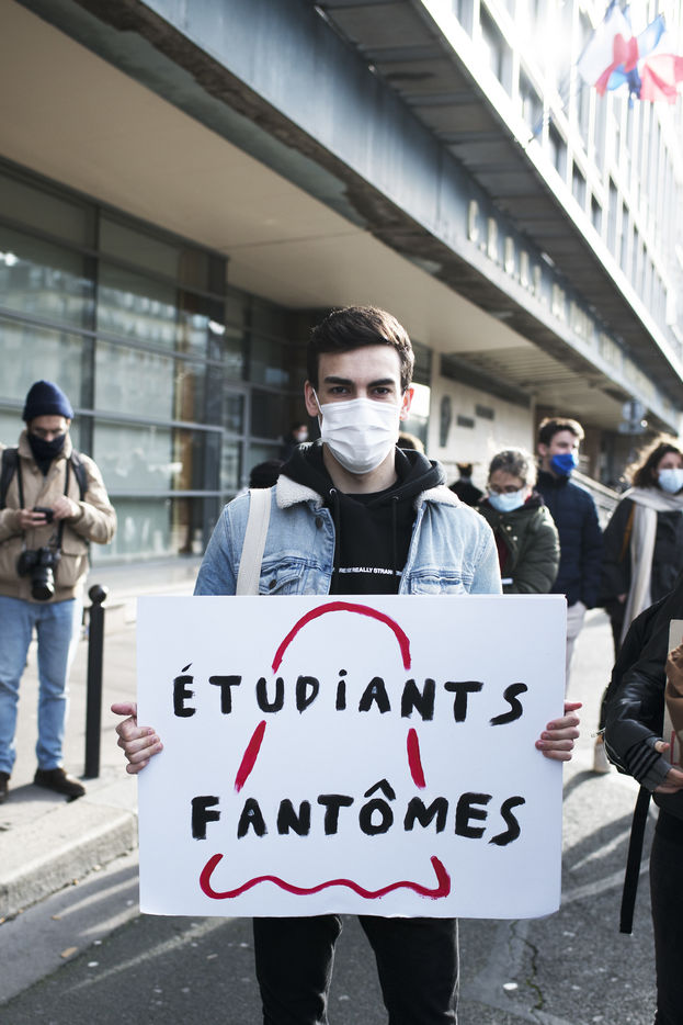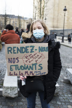 Le mercredi 20 janvier 2021 avait lieu une manifestation des étudiants au départ du CROUS de Paris et allant en direction du Ministère de l'enseignement supérieur pour dénoncer les conditions d'études sous les restrictions induites par le covid entrainant un décrochage scolaire pour de nombreux d'entre-eux et appelant à la réouverture des universités.