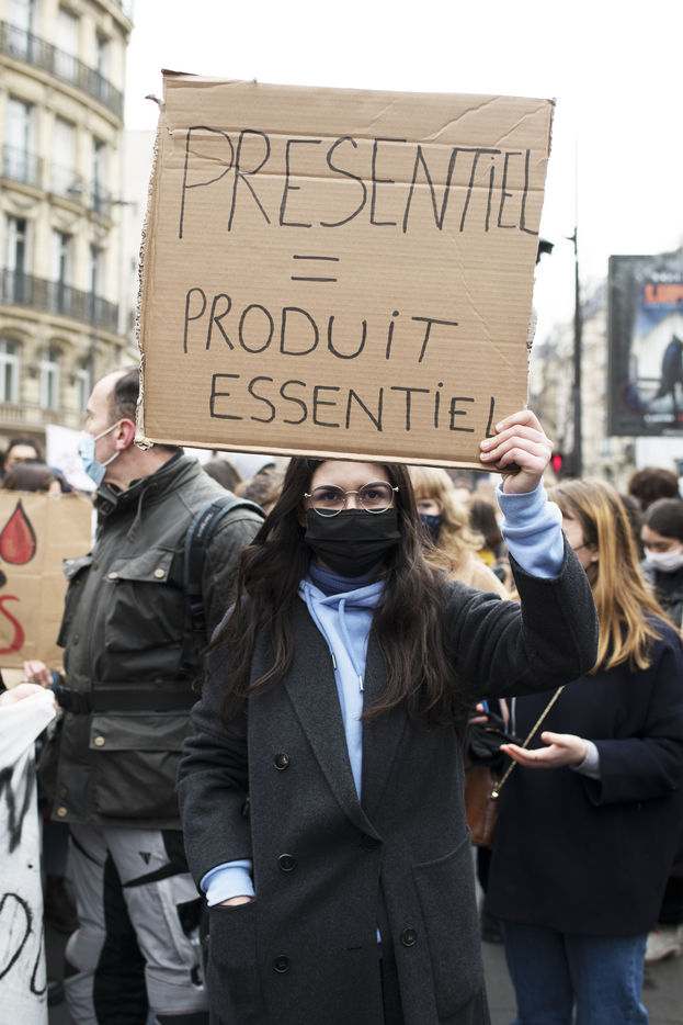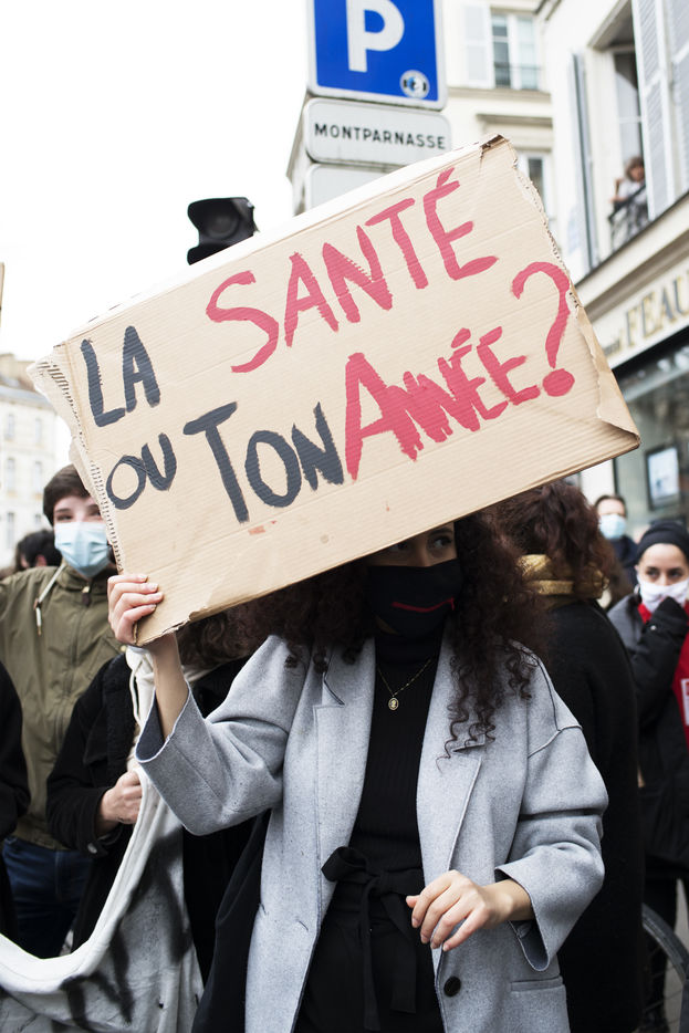 Le mardi 26 janvier 2021 avait lieu une manifestation des étudiants et des infirmiers au départ du métro Luxembourg a Paris. Les étudiants manifestaient pour dénoncer les conditions d'étude sous les restrictions induites par le covid entrainant un décrochage scolaire pour de nombreux d'entre eux et appelant à la réouverture des universités. Le corps médical les a rejoints pour appeler a de meilleures conditions de travail.