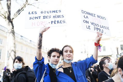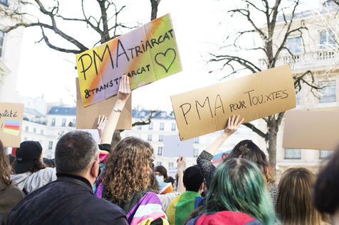 Several hundred demonstrators gathered on Sunday 21 February in front of the National Assembly for PMA (medically assisted procreation) extended to all women, for which the Senate recently voted an amendment removing the opening to single women or couples of women.