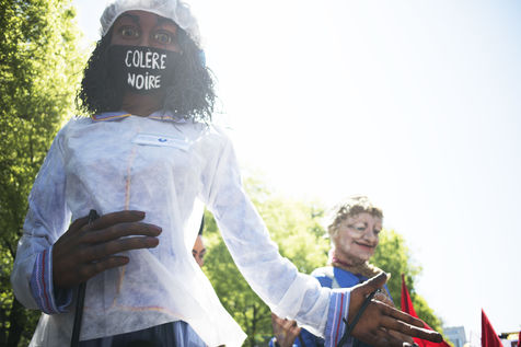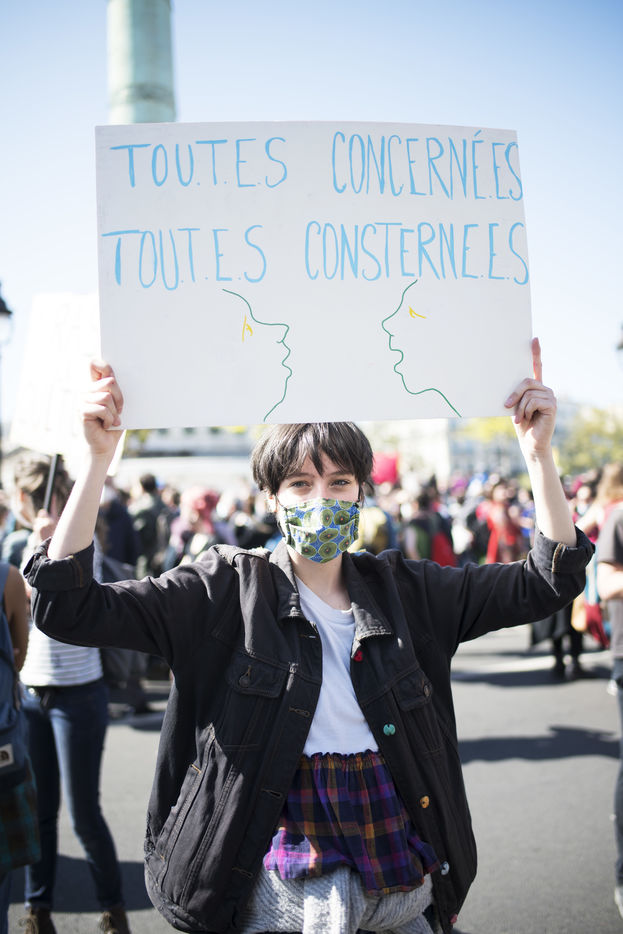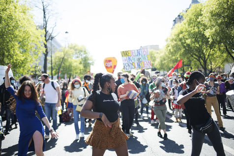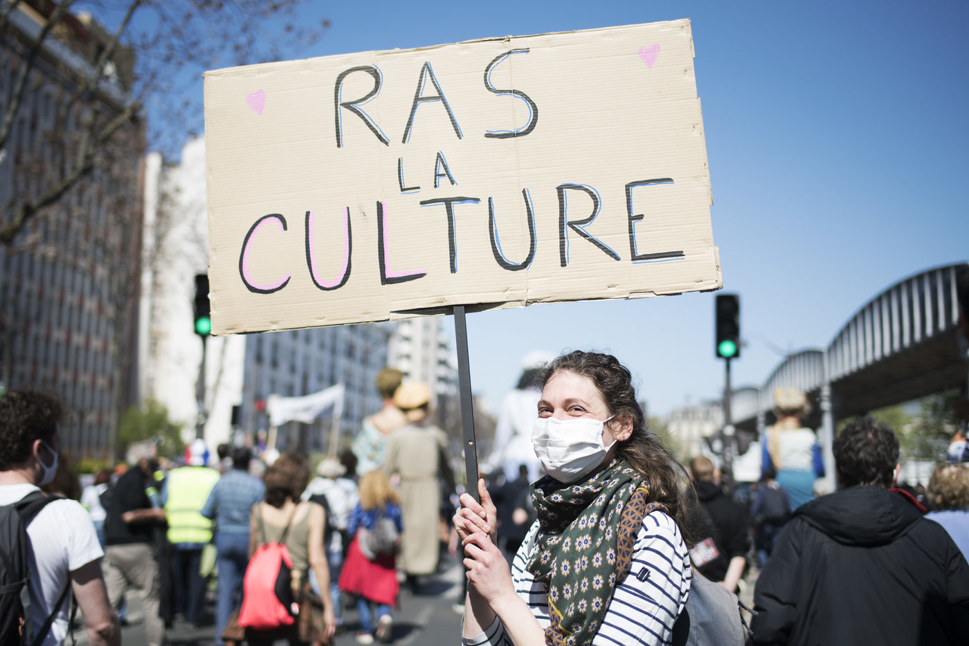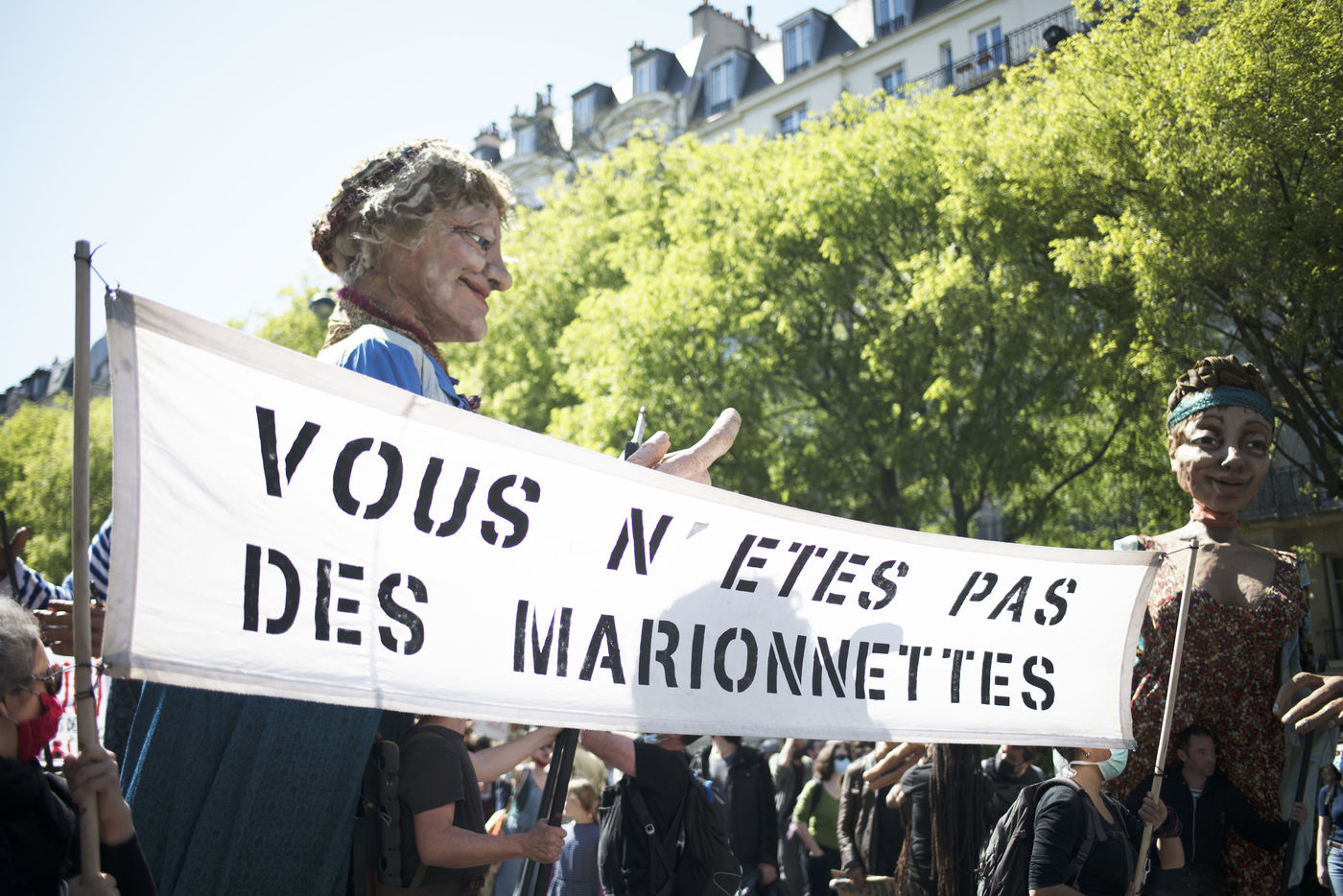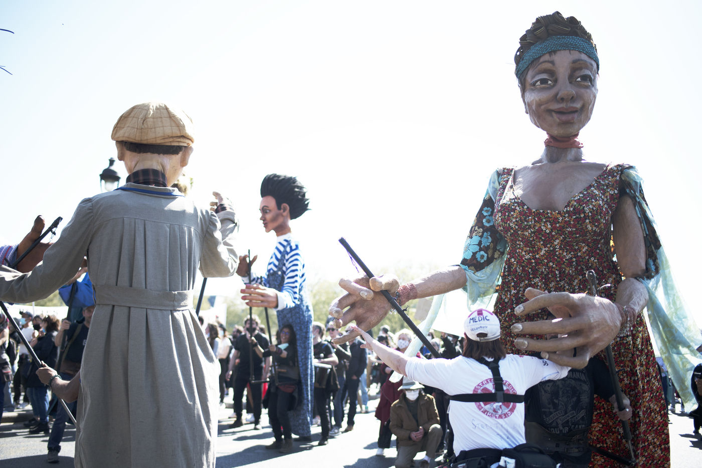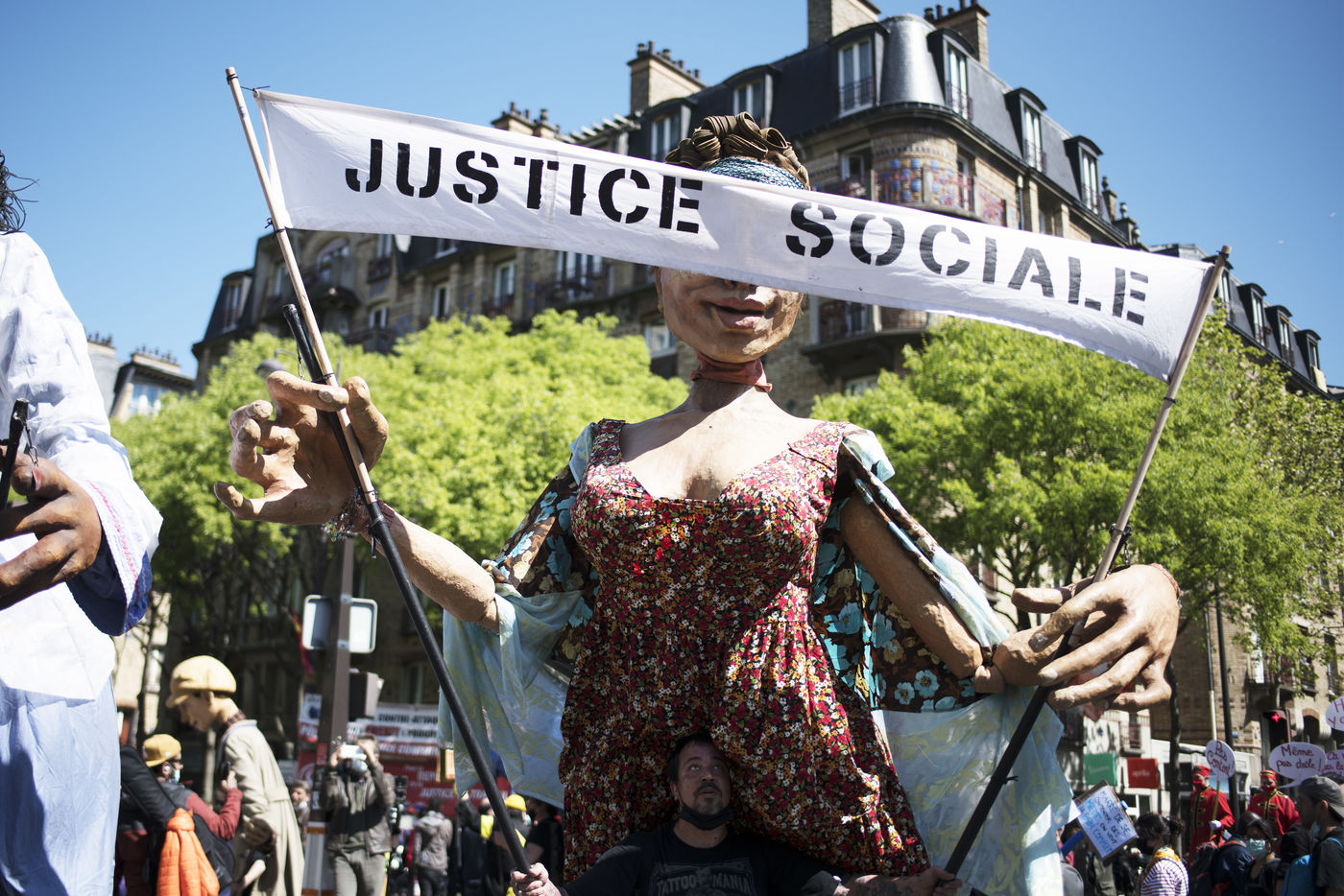 Manifestation contre la réforme de l'assurance chômage et les suppressions d'emplois entre place d'Italie et Bastille, le vendredi 23 avril 2021 à Paris.
