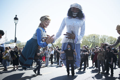Demonstration against the reform of unemployment insurance and job cuts between Place d'Italie and Bastille, Friday, April 23, 2021 in Paris.