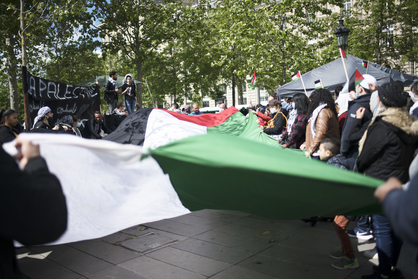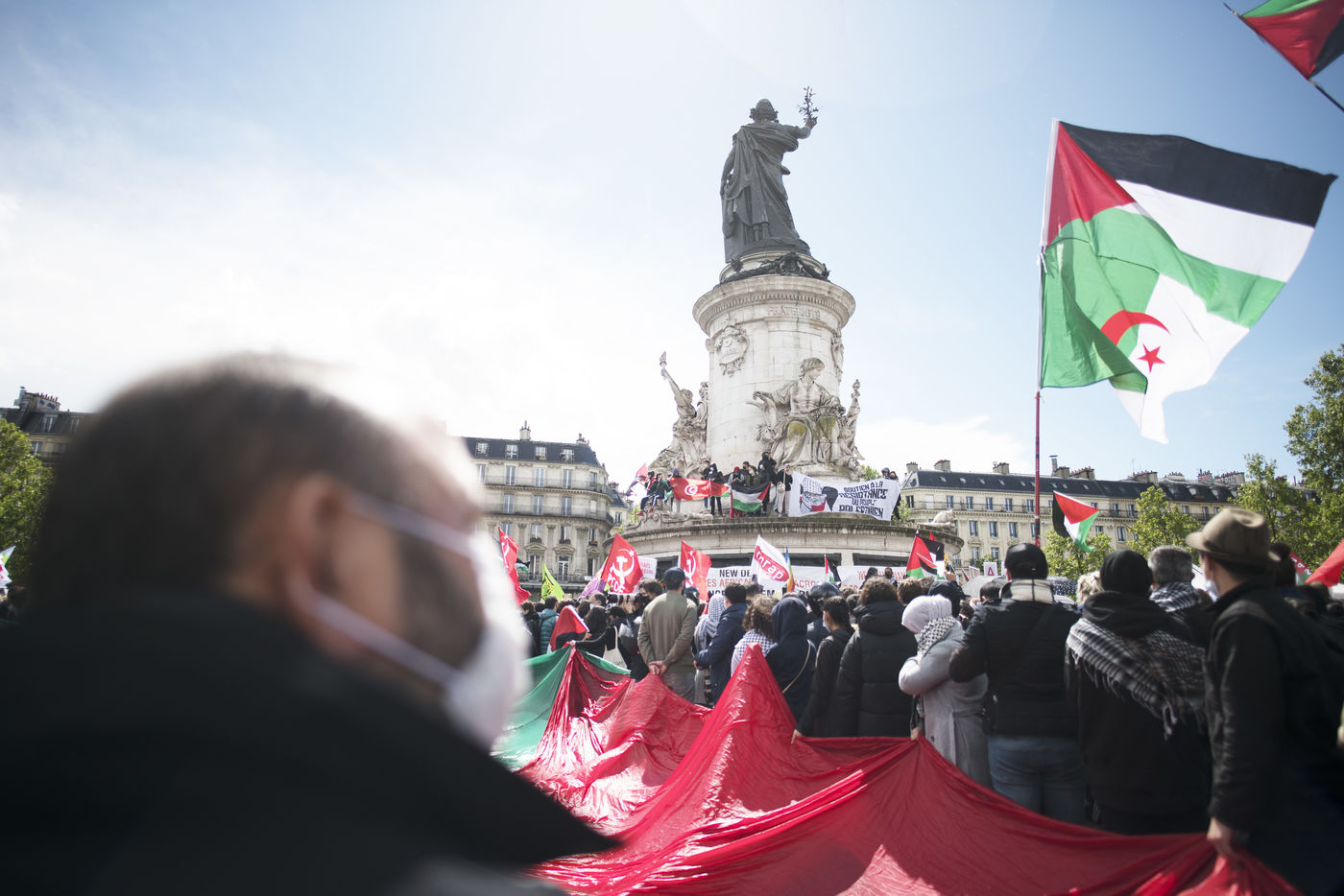 On Saturday 22 May 2021, a new rally took place in support of the Palestinian people in the face of recent confrontations in Jerusalem and between Israel and Gaza. The rally took place in Place de la République and was punctuated by several speeches raising awareness about the situation in Gaza, Jerusalem and Sheikh Jarrah in particular.