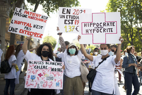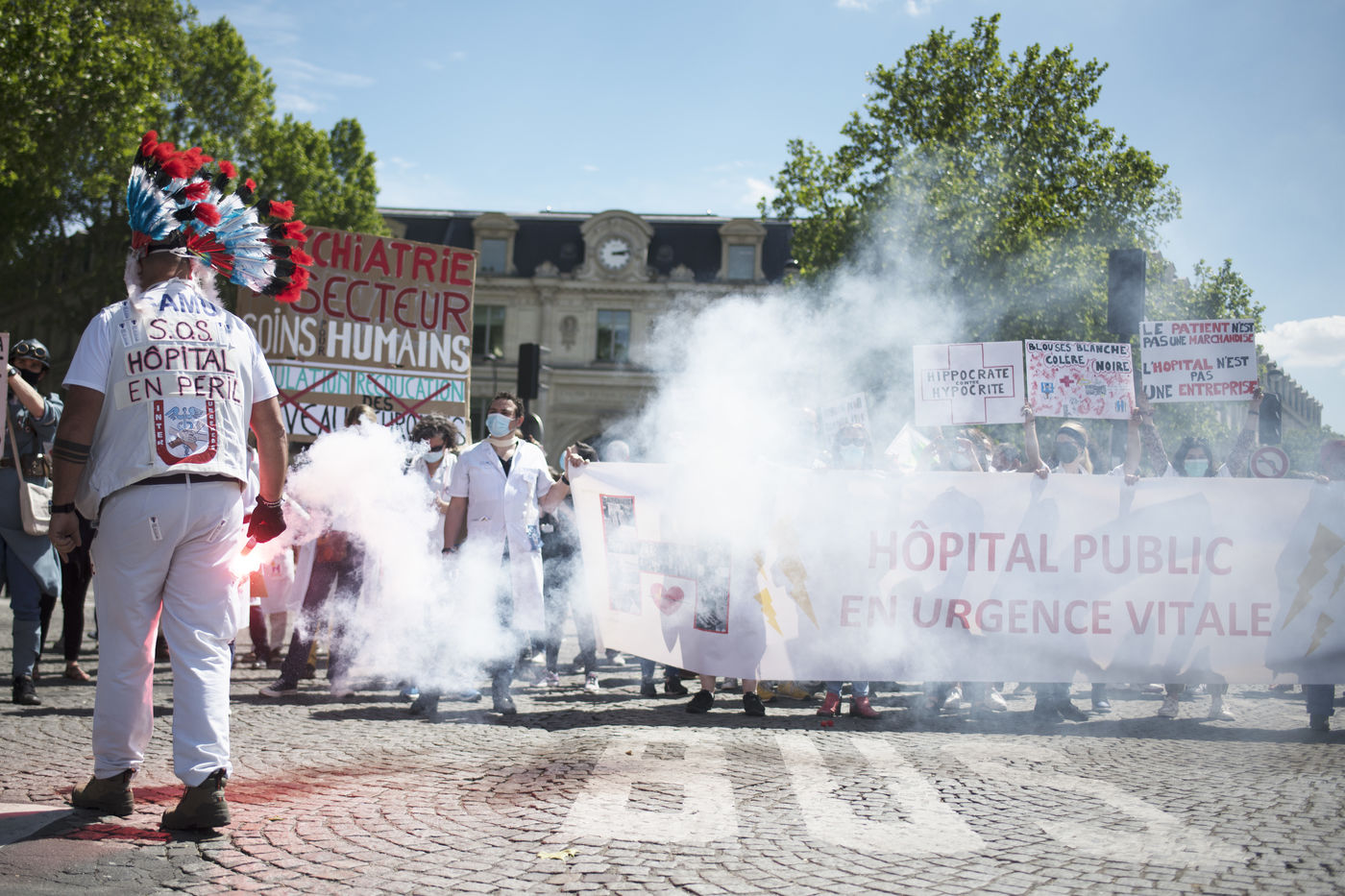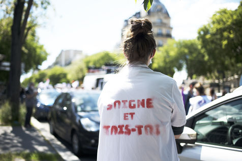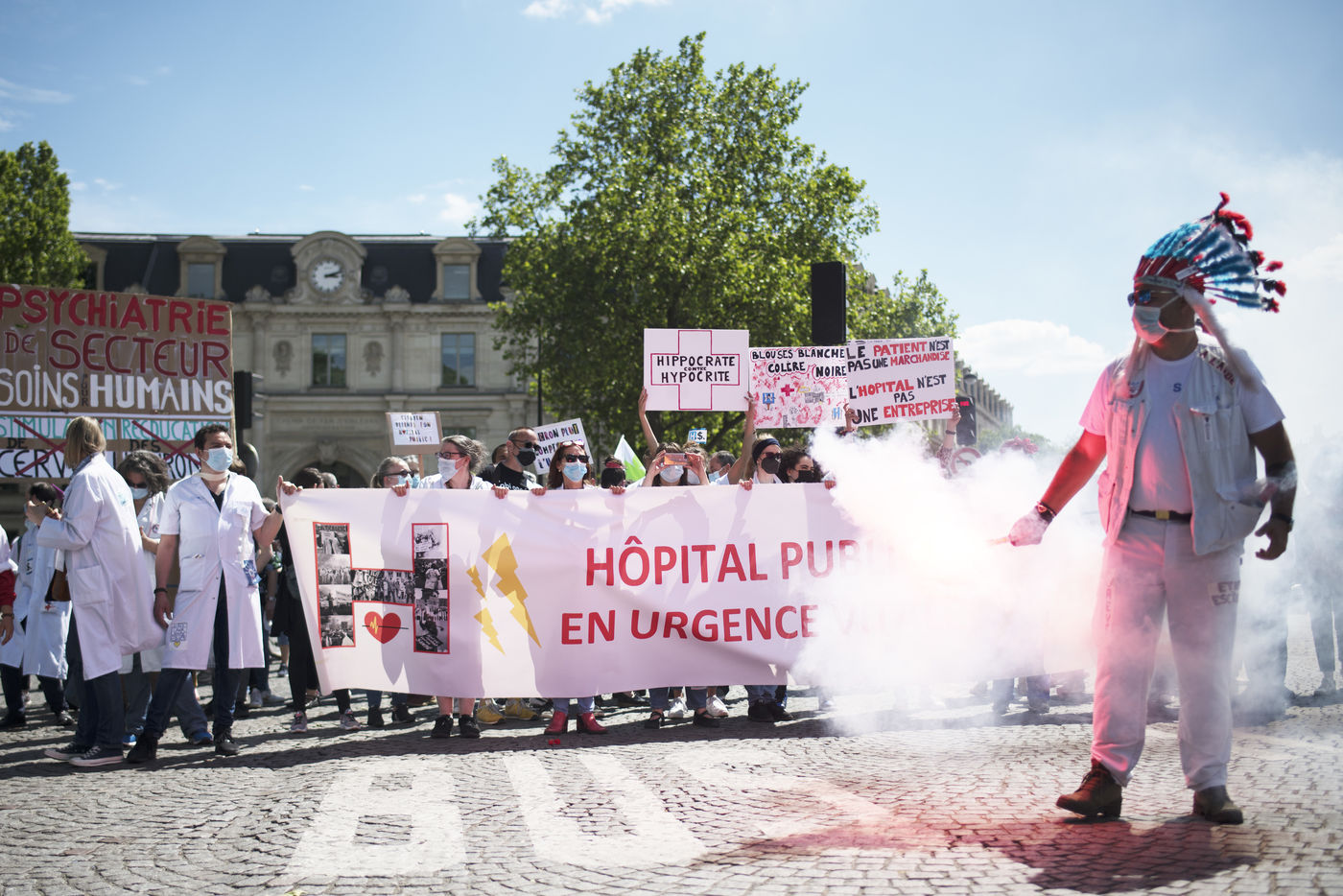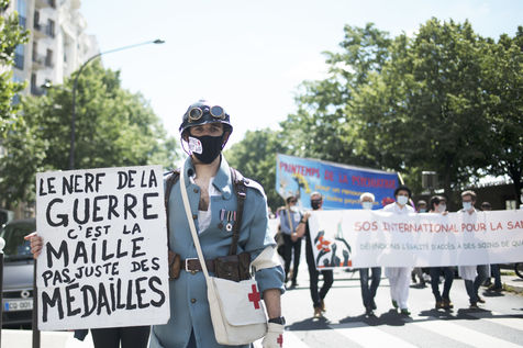 Demonstration of health care workers on 29 May 2021 in Paris between Saint-Marcel and Bastille to demand more resources for public hospitals and universal access to care and medicines.