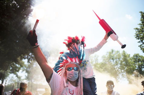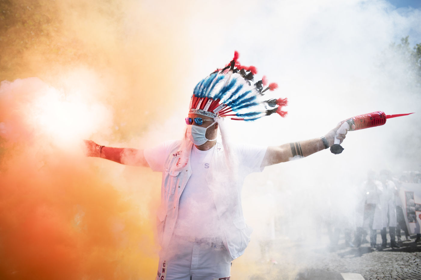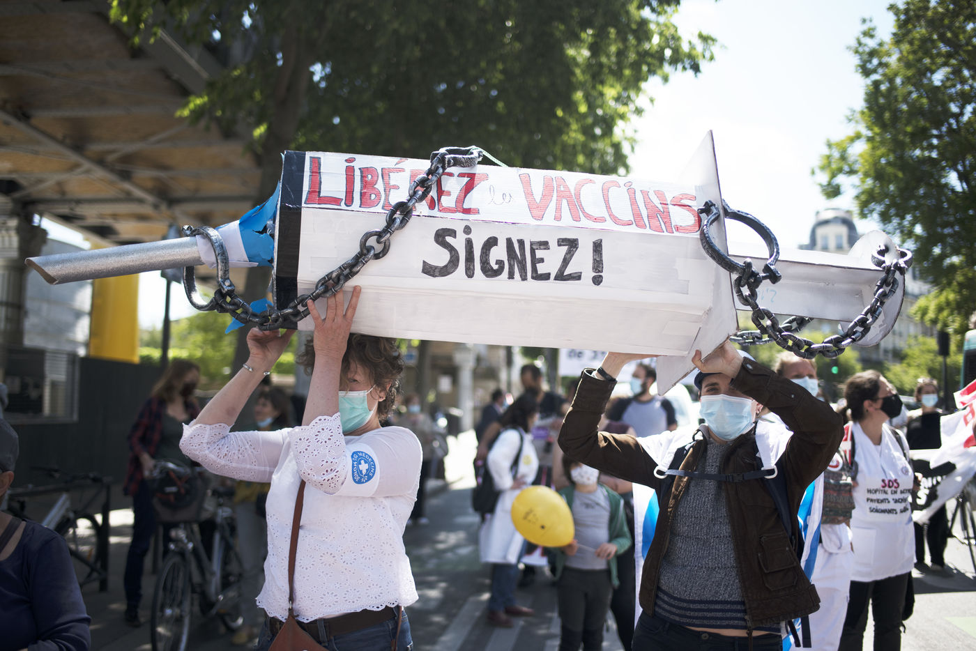 Manifestation des soignants le 29 mai 2021 a Paris entre Saint-Marcel et Bastille pour demander plus de moyens pour l'hôpital public et l'universalité d'accès aux soins et médicaments.