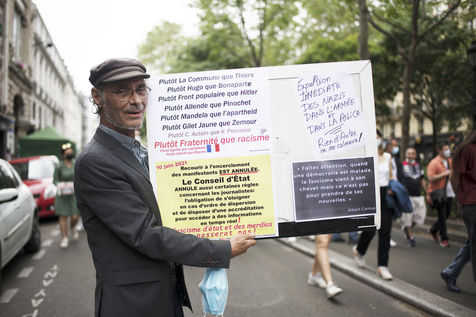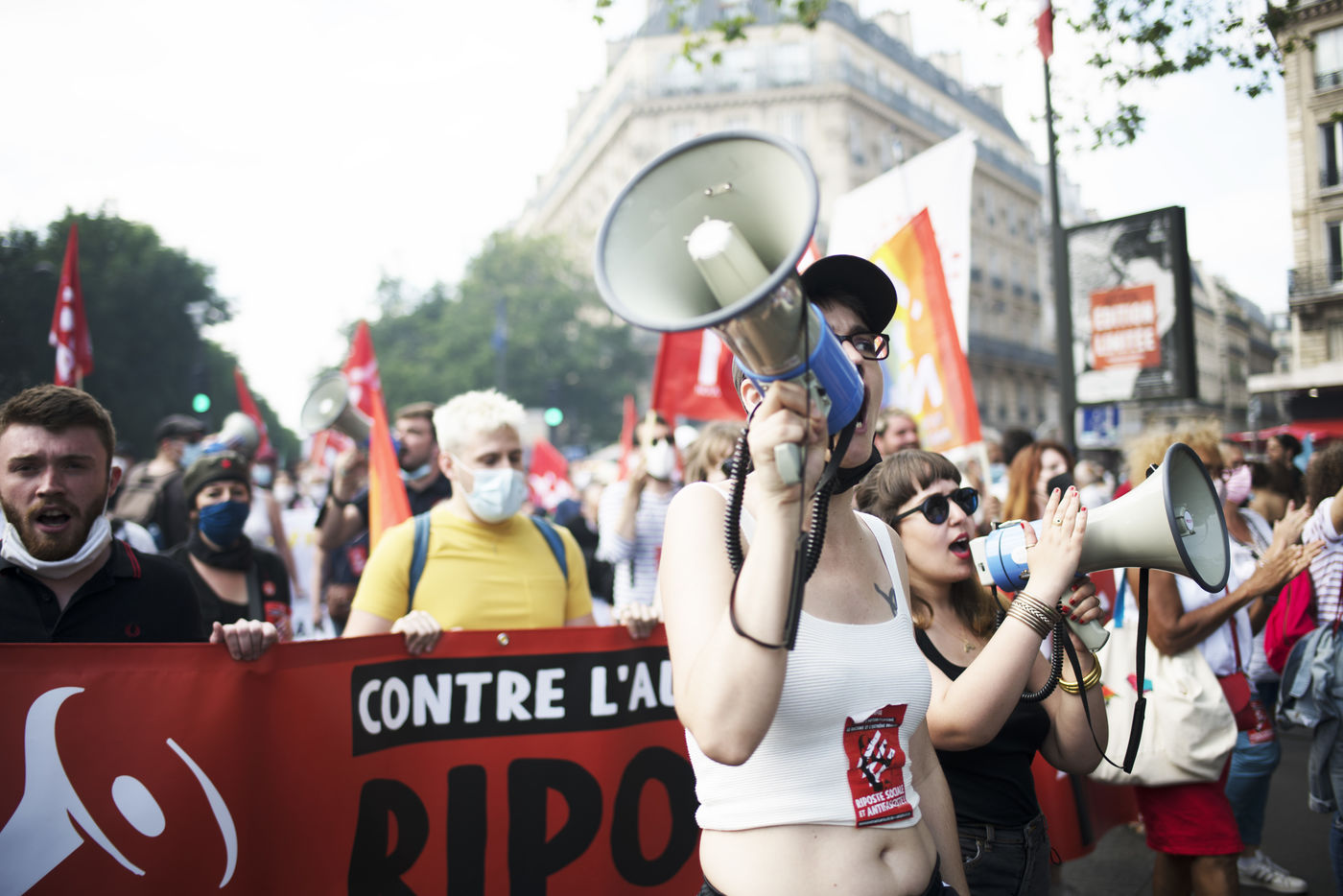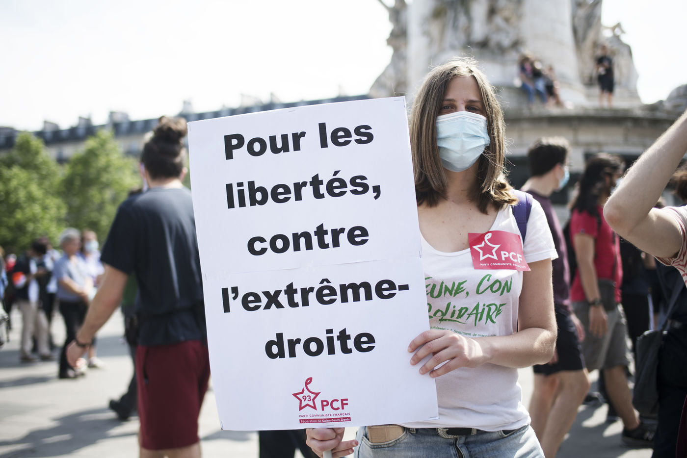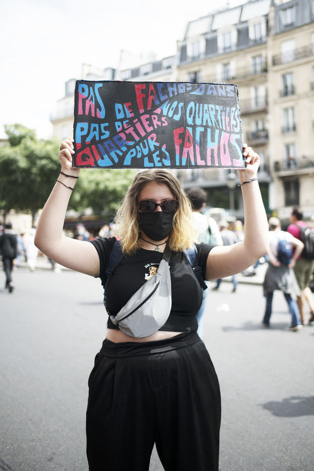Manifestation pour les libertés et contre les idées d'extrême droite, en particulier contre le racisme, le sexisme, l'insécurité sociale et pour une égalité des droits. La manifestation a pris place le samedi 12 juin 2021 à Paris entre place de Clichy et République.