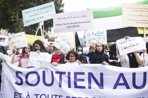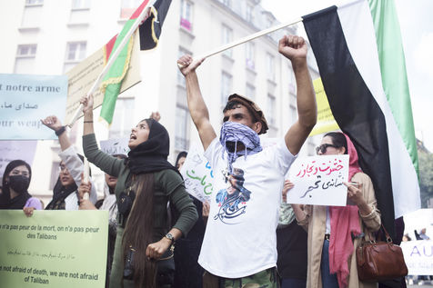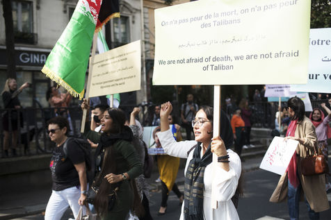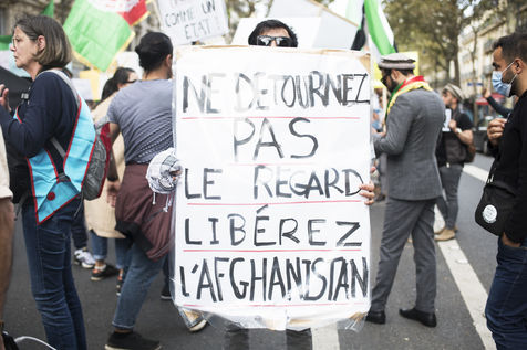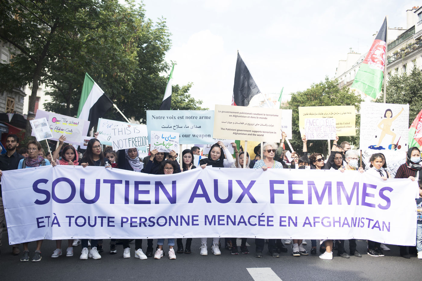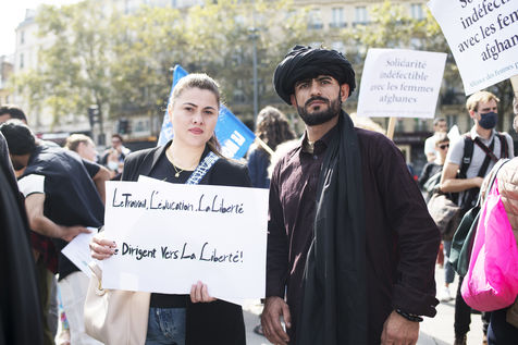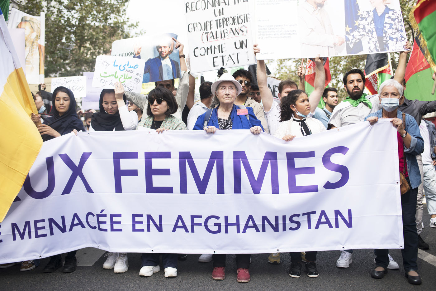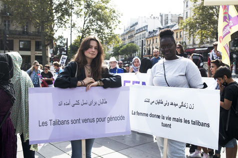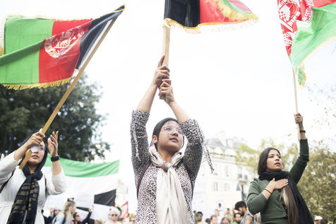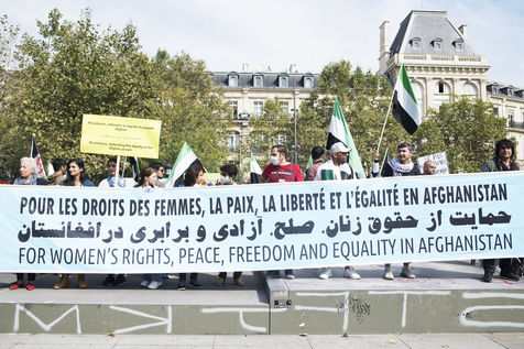 Demonstration in support of Afghan women between Place de la République and Hôtel de Ville, September 19, 2021, in Paris. The demonstrators marched for women's rights, peace, freedom and equality in Afghanistan, and affirmed their support for the resistance against the Taliban.