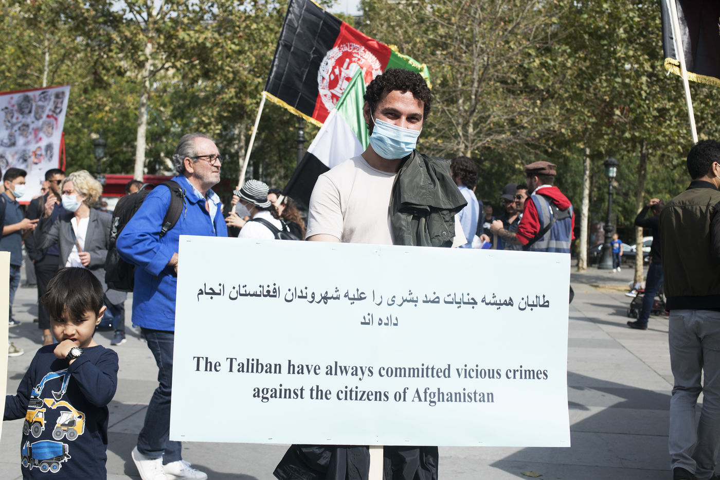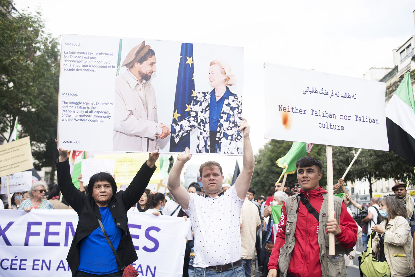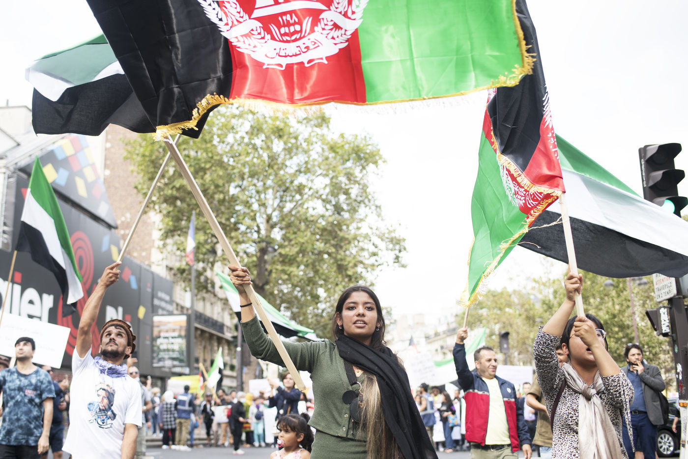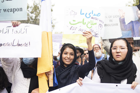 Demonstration in support of Afghan women between Place de la République and Hôtel de Ville, September 19, 2021, in Paris. The demonstrators marched for women's rights, peace, freedom and equality in Afghanistan, and affirmed their support for the resistance against the Taliban.