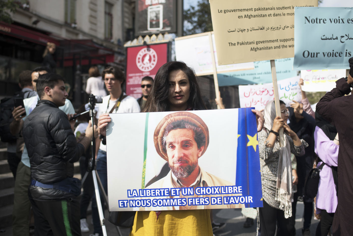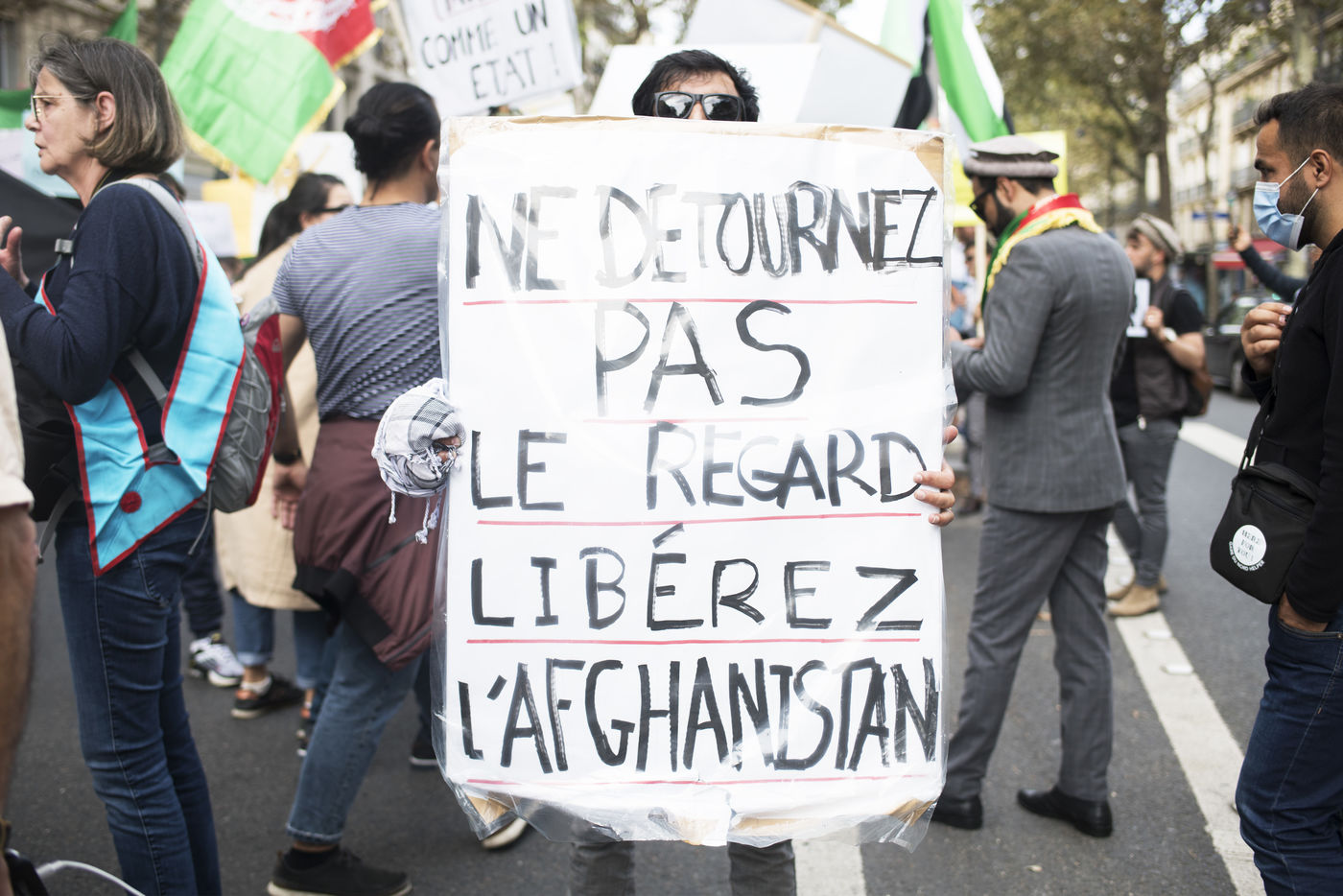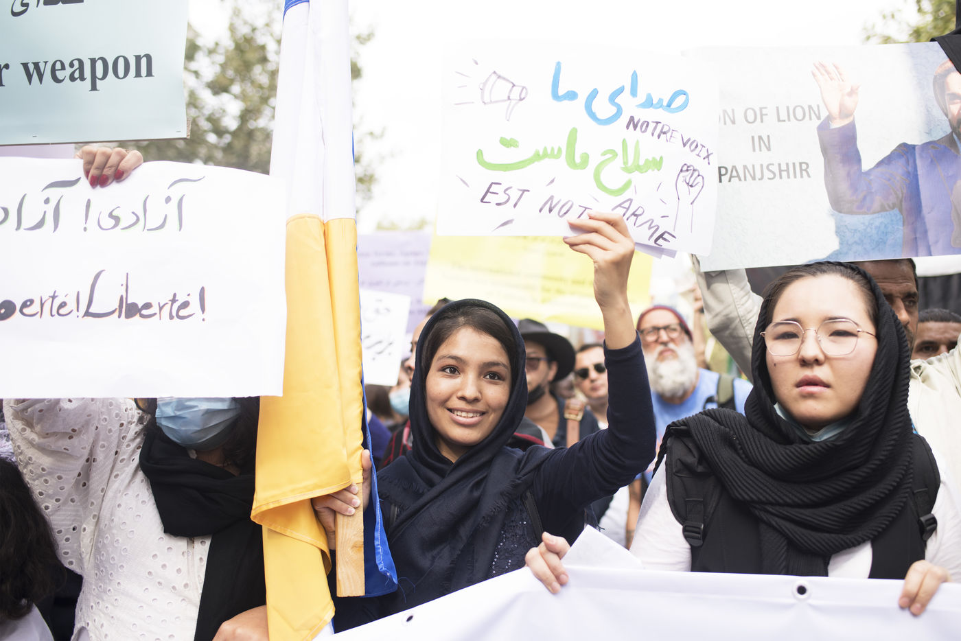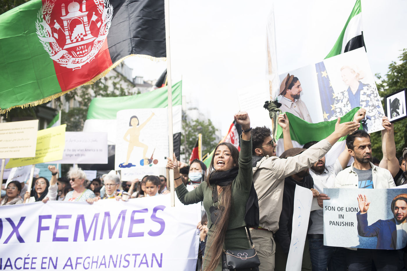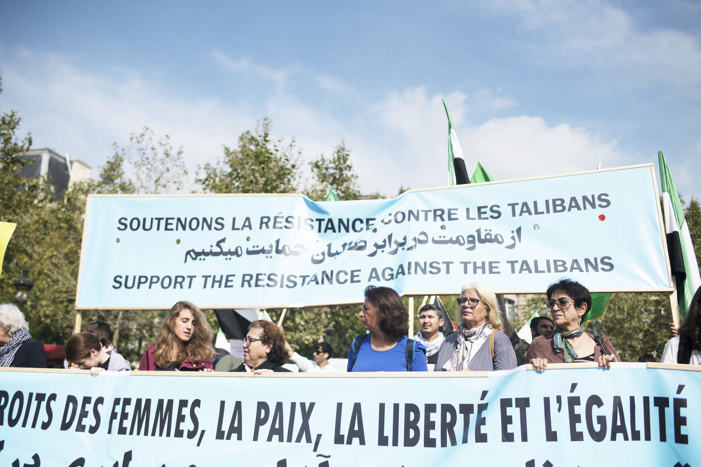 Manifestation en soutien aux femmes afghanes entre la place de la République et Hôtel de ville, le 19 septembre 2021, à Paris. Les manifestants marchaient pour les droits des femmes, la paix, la liberté et l'égalité en Afghanistan, et affirmaient leur soutien à la résistance face aux talibans.