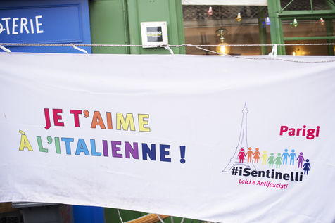 Rassemblement pour la Journée en soutien à la proposition de loi contre l'homotransphobie en Italie, à Paris