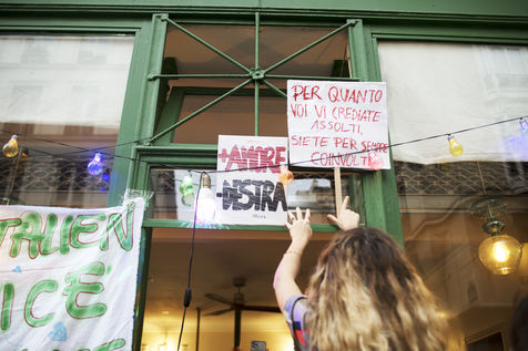 Rassemblement pour la journée en soutien à la proposition de loi contre l'homotransphobie en Italie, à Paris. Le 27 octobre dernier, le Sénat italien a refusé d'approuver la loi Zan qui avait pour objectif de combattre les discriminations et les violences liées a l'orientation sexuelle, au genre, à l'identité de genre et au handicap. Plusieurs dizaines de personnes se sont rassemblées ce dimanche 31 octobre 2021 à Paris pour montrer leur soutien a cette proposition de loi.