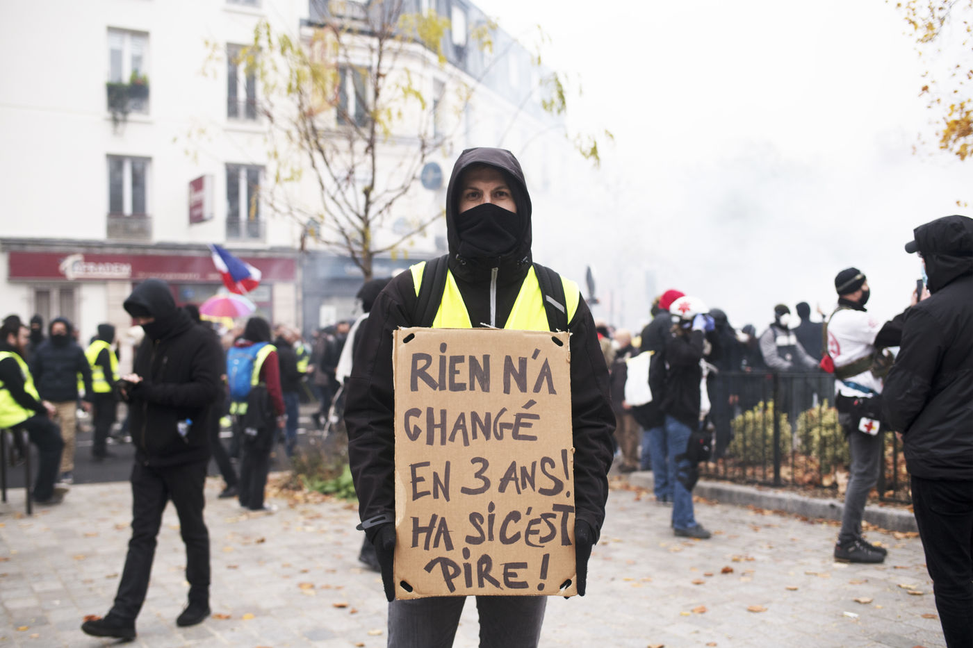 Yellow jackets demonstration for the third anniversary of the movement, between Bercy and Alesia in Paris.