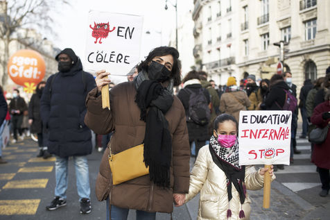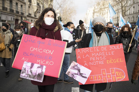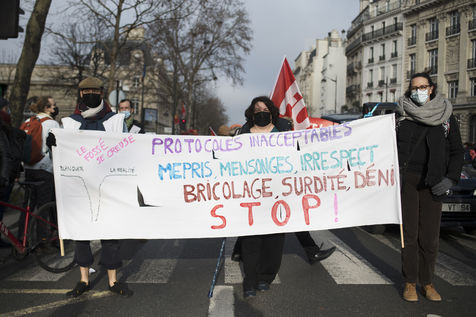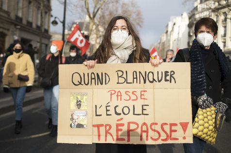 Ce jeudi 13 janvier 2022, l'ensemble de la communauté éducative était appelée à se mobiliser pour demander une politique cohérente de prévention et de protection qui soit a la hauteur des enjeux scolaires, sanitaires et sociaux. La manifestation avait pour départ la place Edmond Rostand, les manifestants ont été bloqués par la police Boulevard Raspail et n'ont pas pu se rendre jusqu'au ministère de l'éducation comme il était prévu.