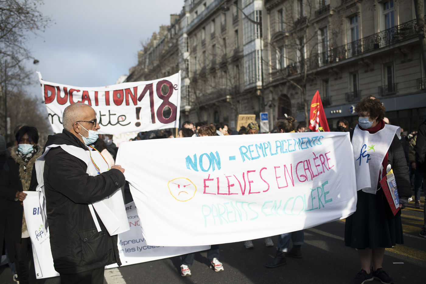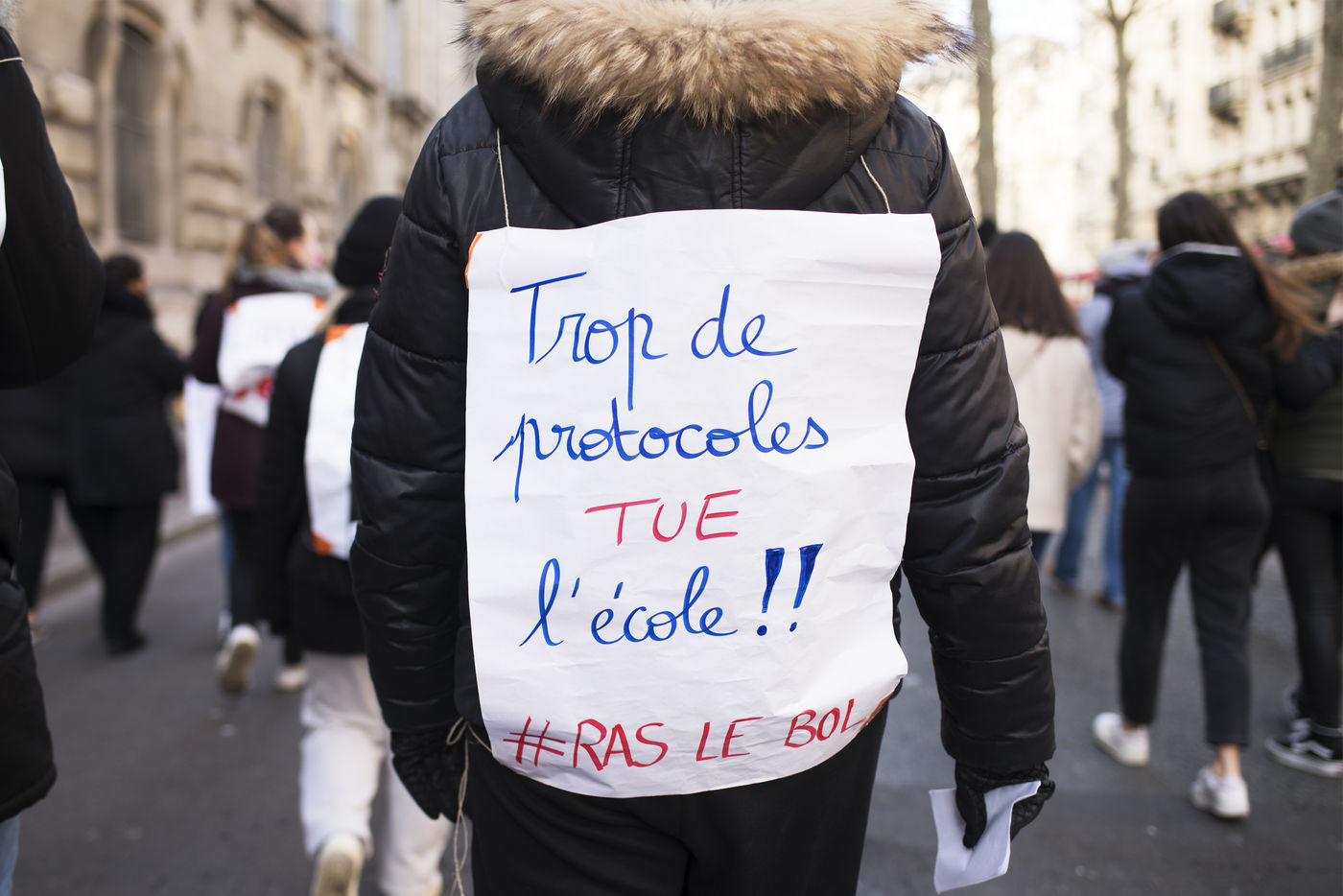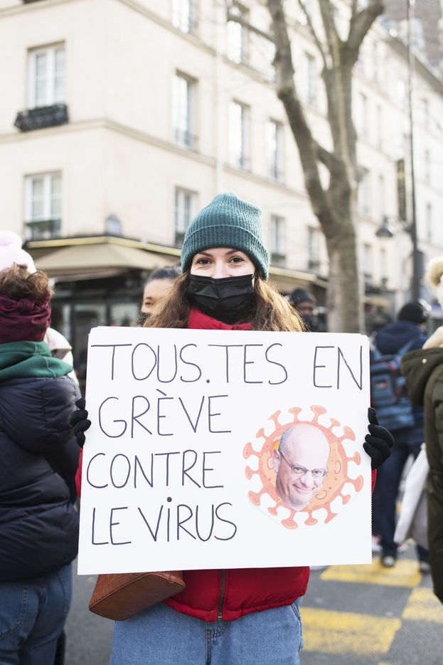 This Thursday, January 13, 2022, the entire educational community was called to mobilize to demand a coherent policy of prevention and protection that is equal to the school, health and social issues. The demonstration started from the Place Edmond Rostand, the demonstrators were blocked by the police on Boulevard Raspail and could not go to the Ministry of Education as planned.