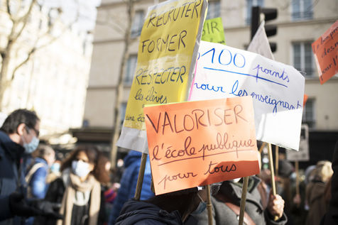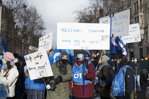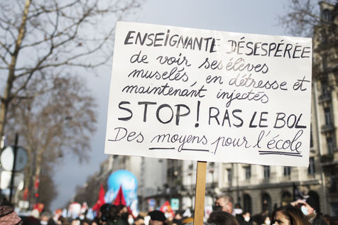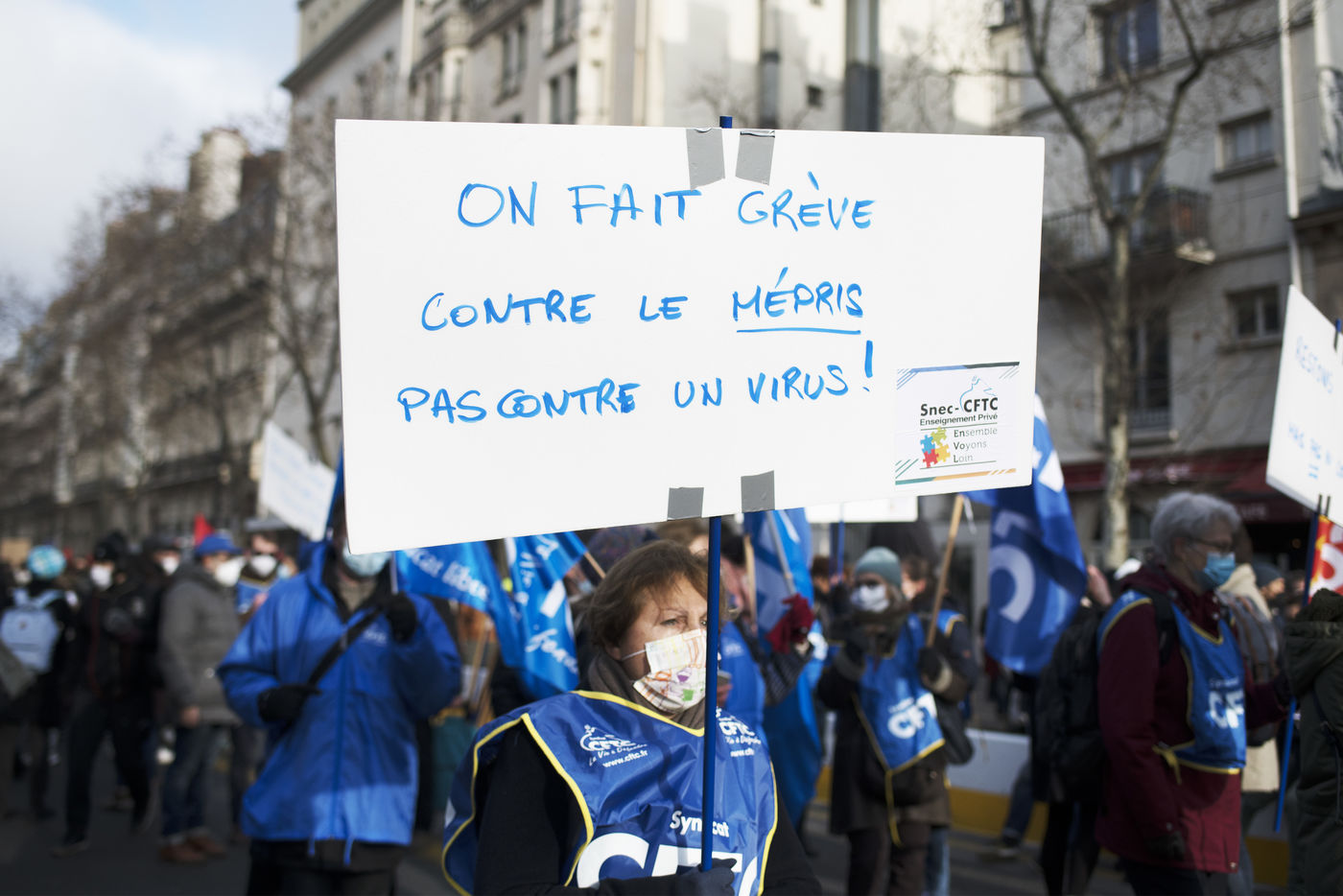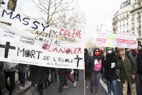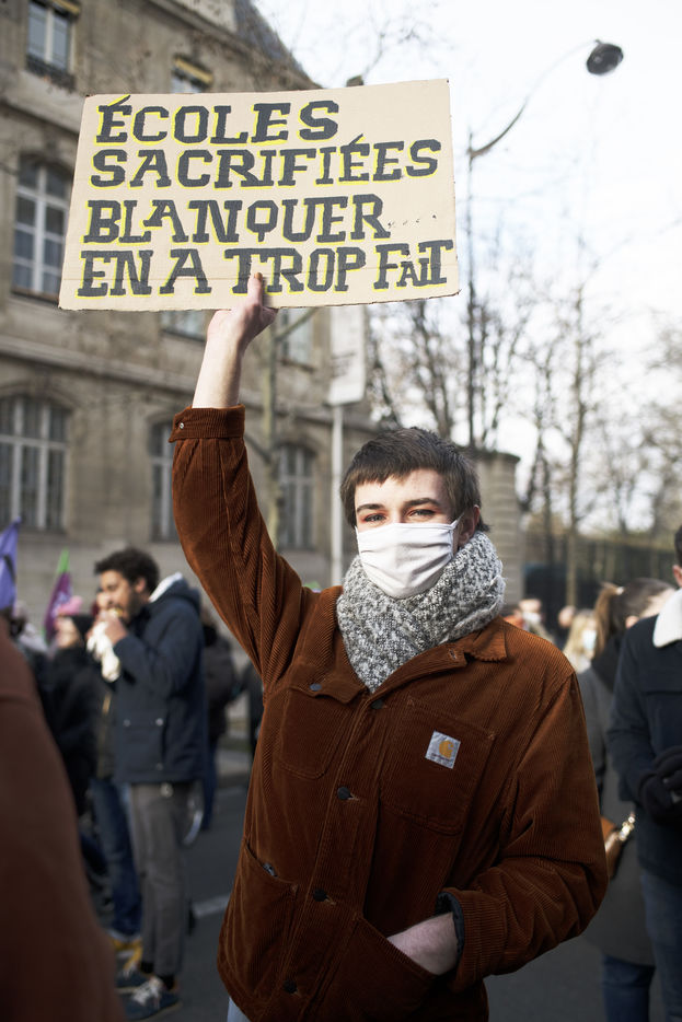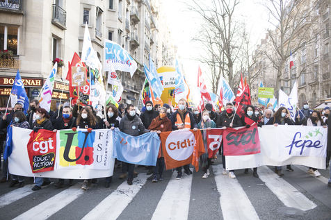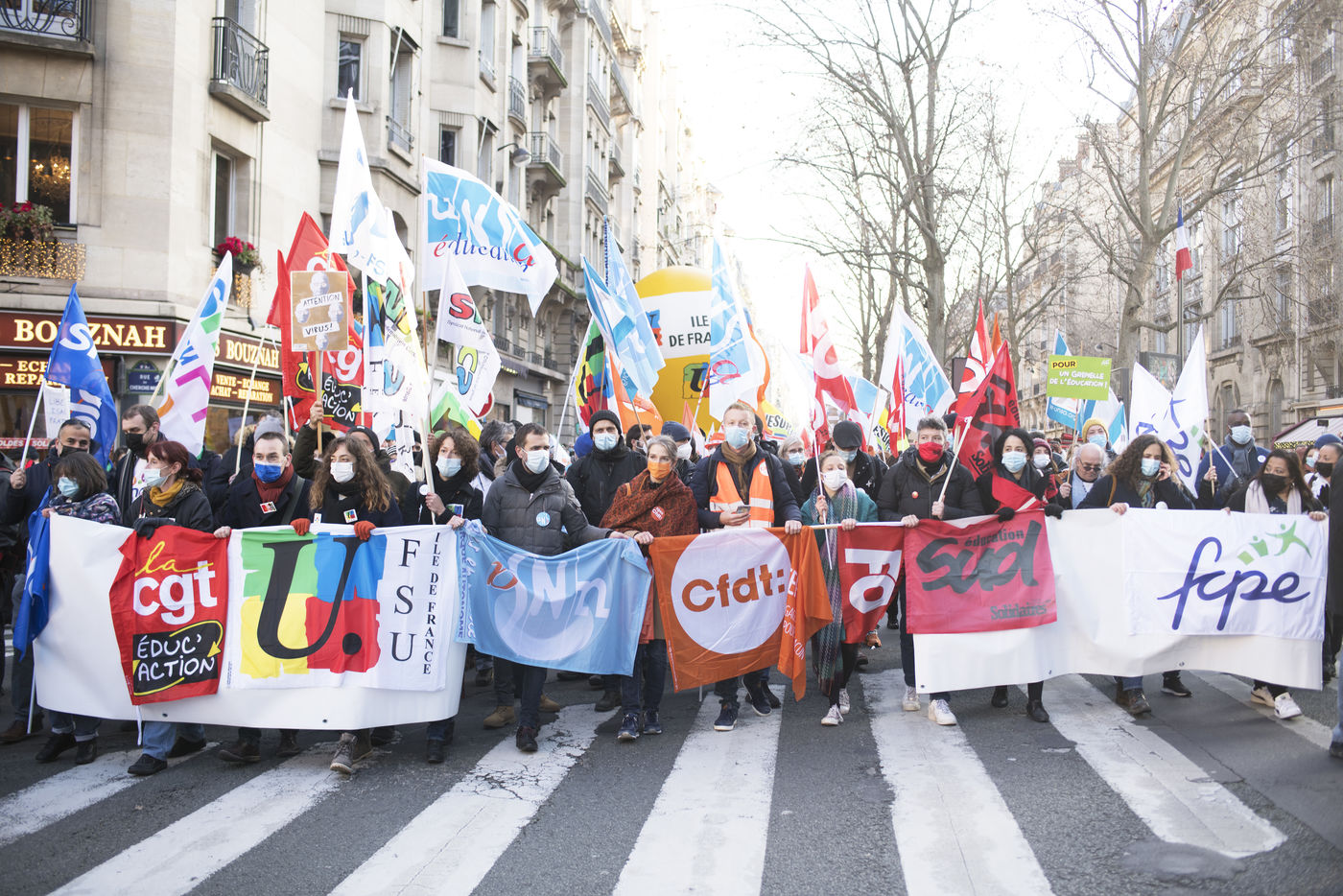 This Thursday, January 13, 2022, the entire educational community was called to mobilize to demand a coherent policy of prevention and protection that is equal to the school, health and social issues. The demonstration started from the Place Edmond Rostand, the demonstrators were blocked by the police on Boulevard Raspail and could not go to the Ministry of Education as planned.
