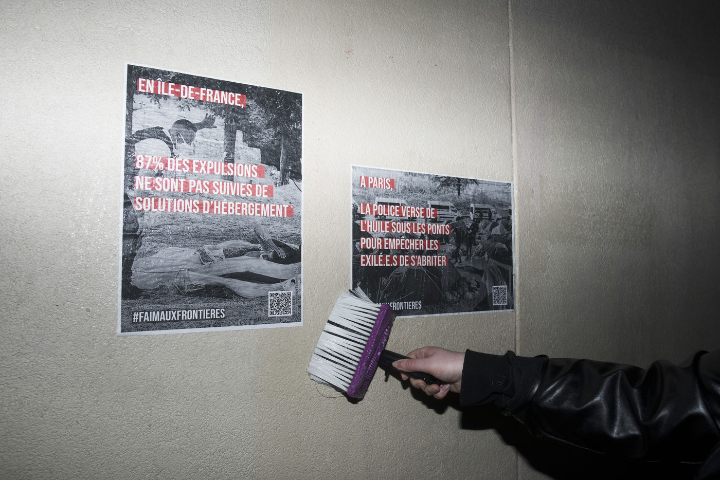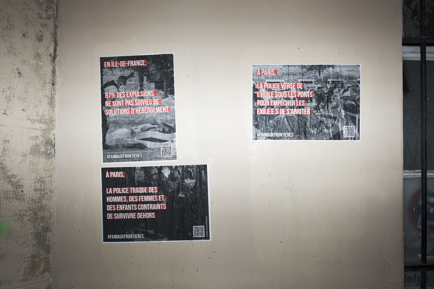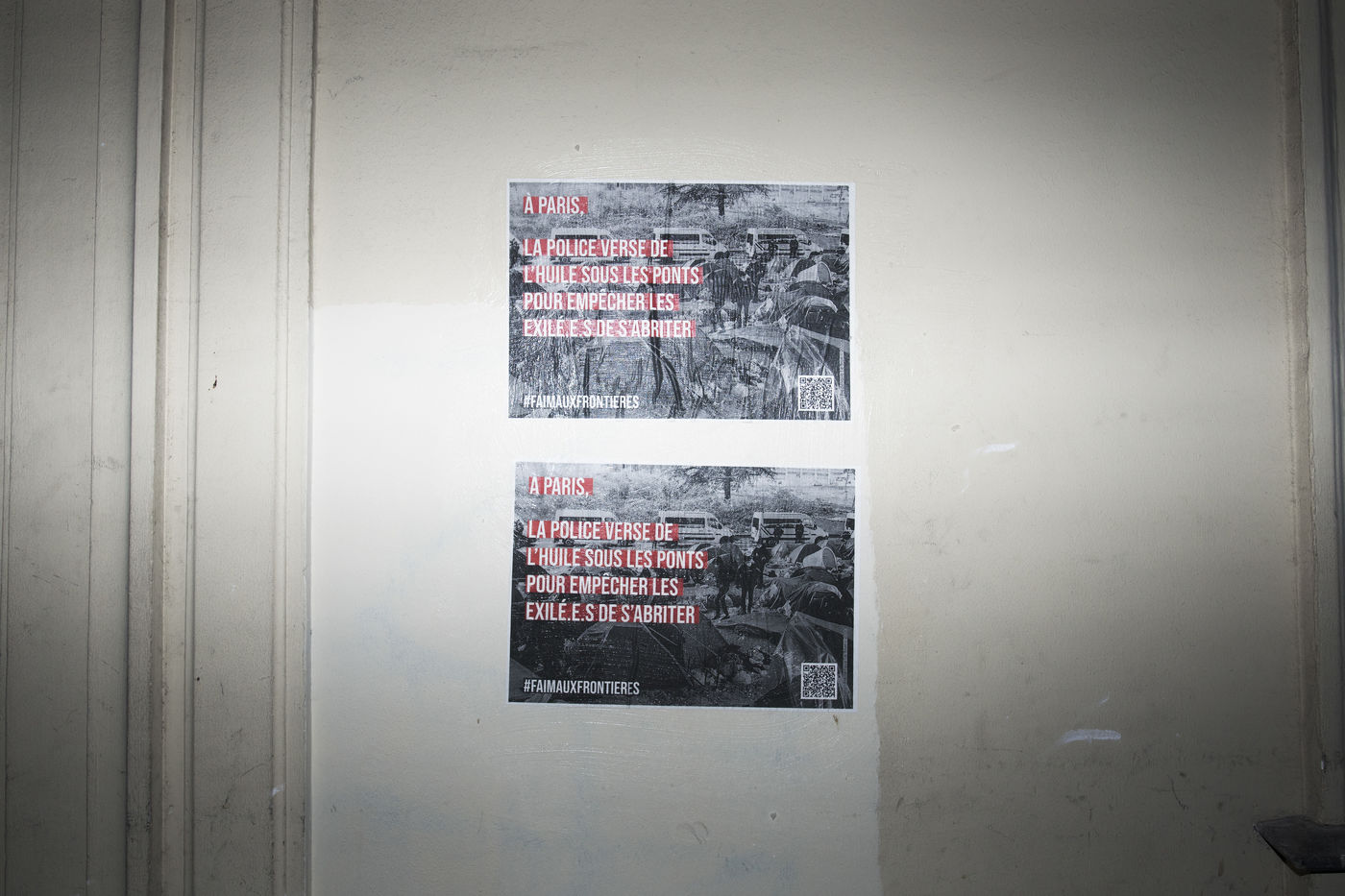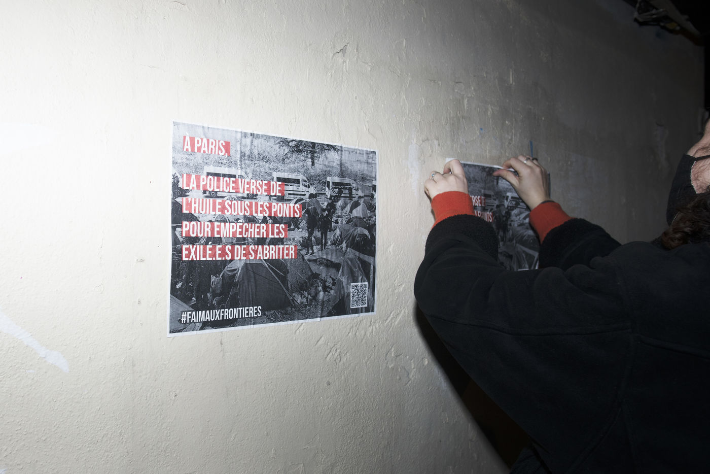 Dans la nuit du mercredi 9 février 2022, plusieurs membres de différents collectifs venant en aide aux réfugiés et exilés se sont réunis dans les rues de Paris pour coller des affiches dénonçant les violences policières envers les personnes exilées.