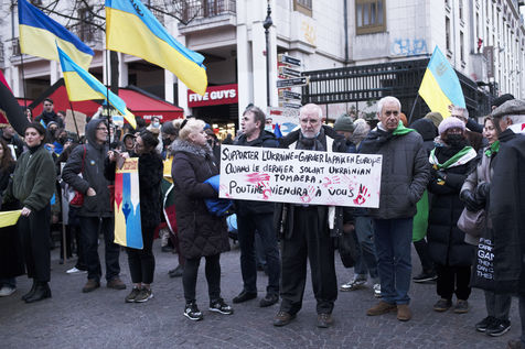 Manifestation en soutien au peuple ukrainien et contre la guerre en Ukraine, à Paris, le 19 février 2022 alors que soixante pour-cents des effectifs de l'armée russe sont déjà positionnés autour de l'Ukraine.