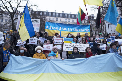Demonstration in support of the Ukrainian people and against the war in Ukraine, in Paris, 19 February 2022, while sixty percent of the Russian army is already positioned around Ukraine.