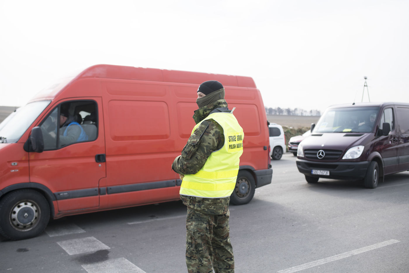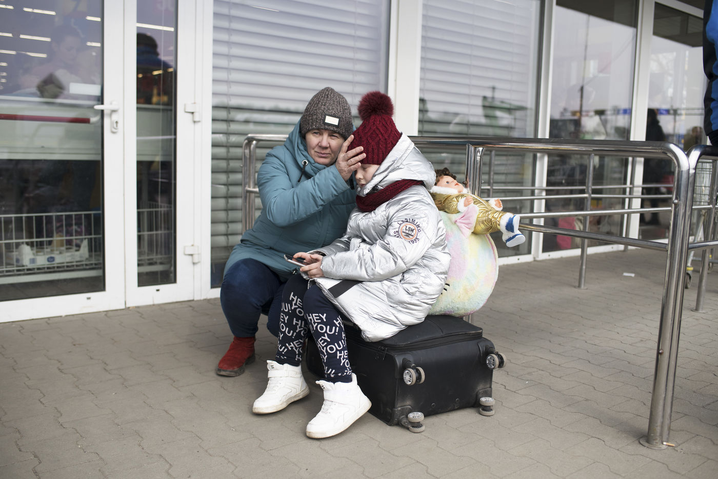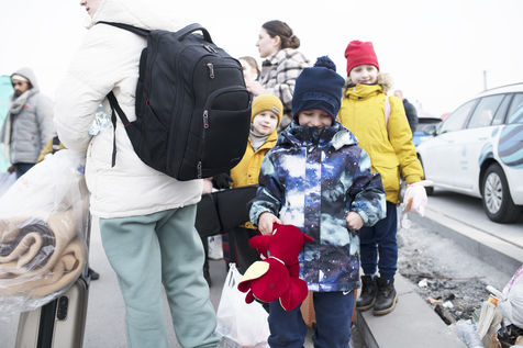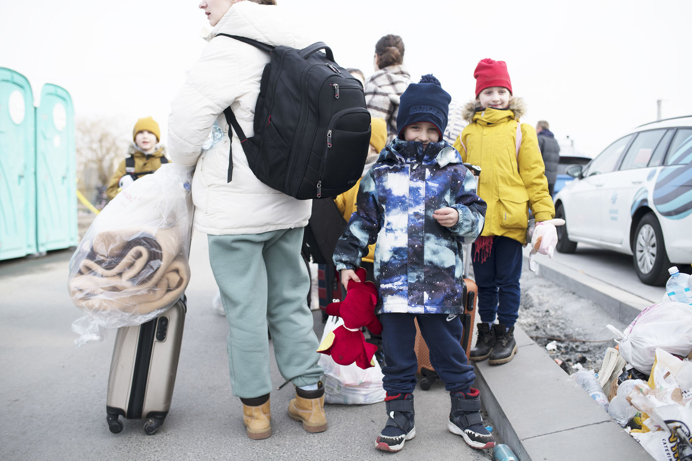 Ukrainian refugees wait for transportation to leave Medyka shortly after crossing the border between Ukraine and Poland. March 3, 2022.