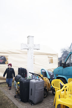 Ukrainian refugees are crossing the border between Ukraine and Poland in the vicinity of Hrebenne. Several associations are present to help them. March 4th 2022.
