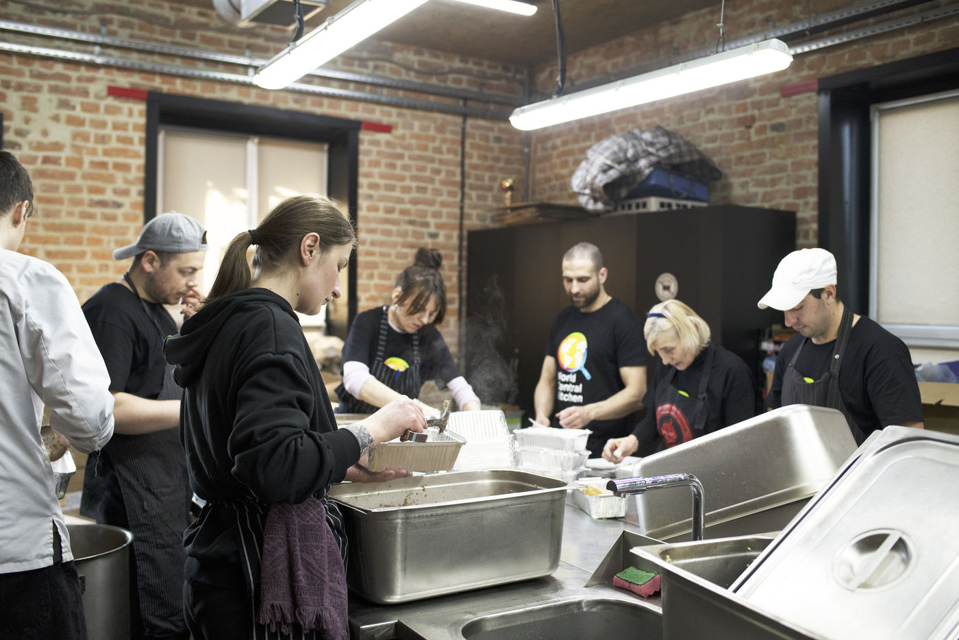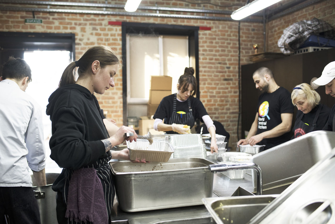 Since the beginning of the war in Ukraine, several groups of volunteers have been mobilizing in Lviv to help refugees from eastern Ukraine. This group of volunteers prepares up to ten thousand meals a day in a warehouse in the suburbs of Lviv. March 14, 2022.