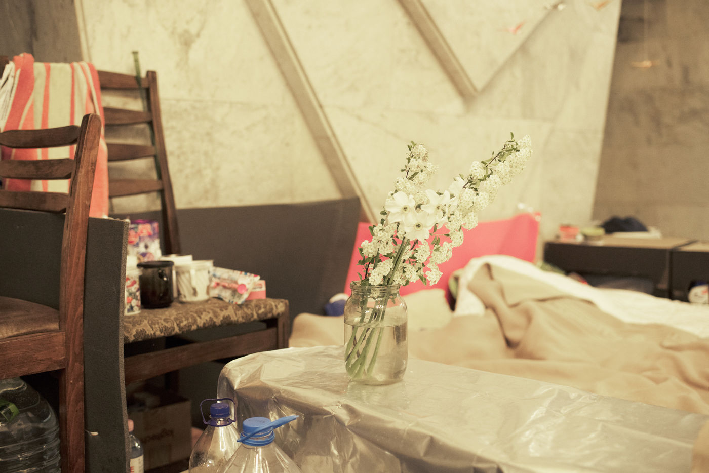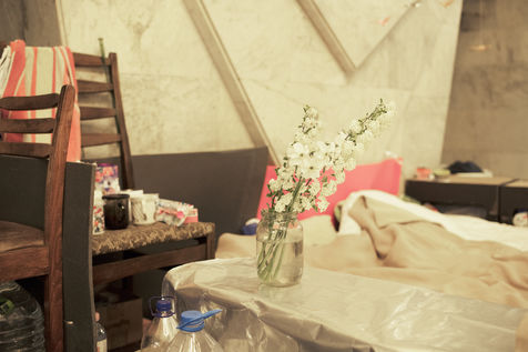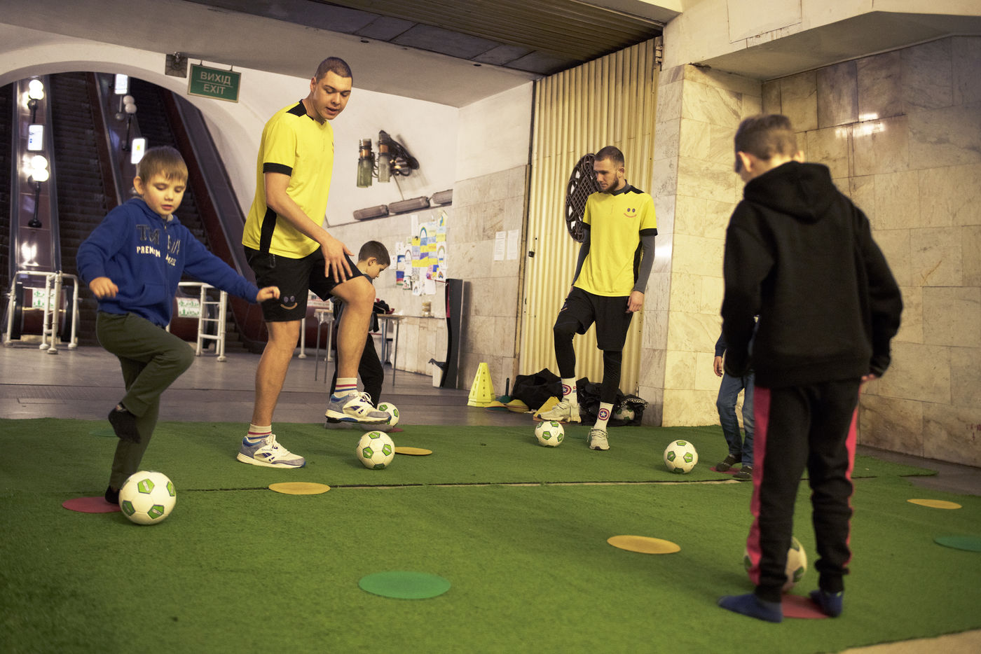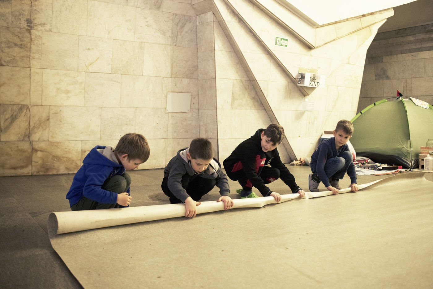 Dans la ville de Kharkiv a 40 kilomètres de la frontière russe, bombardée depuis des semaines, de nombreux bâtiments civils ont été détruits par des missiles russes. Depuis le début de la guerre, des milliers d'habitants s'abritent dans les stations de métro de la ville. Un demi wagon ou quelques mètres carrés sur un des quais sont devenus l'espace de vie de certaines familles depuis maintenant plus de deux mois. Le 16 mai 2022, dans la station Pushkinska.