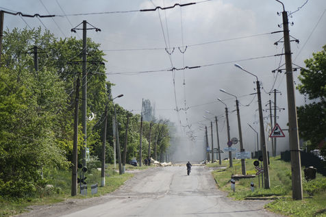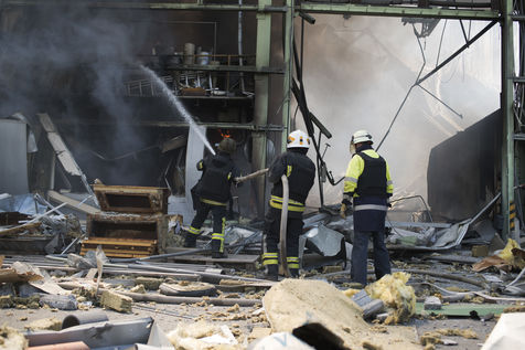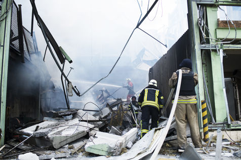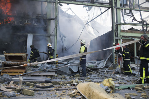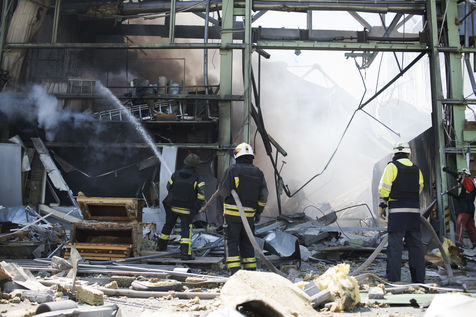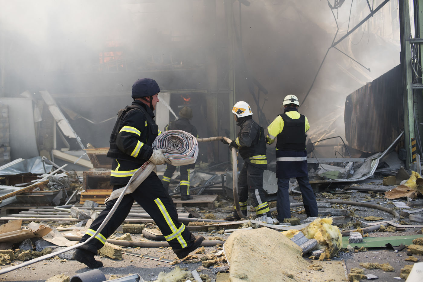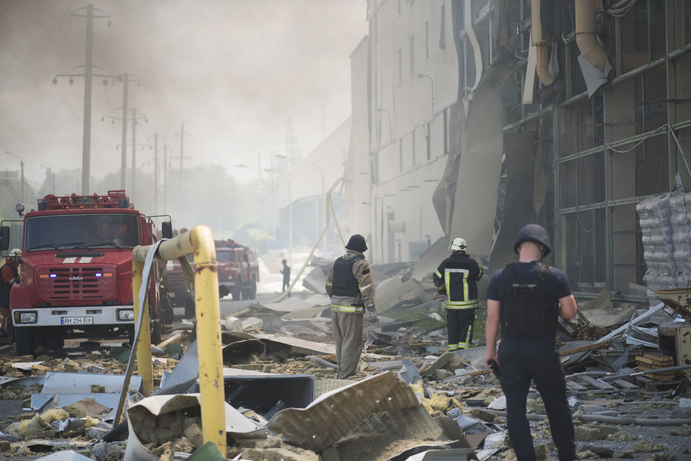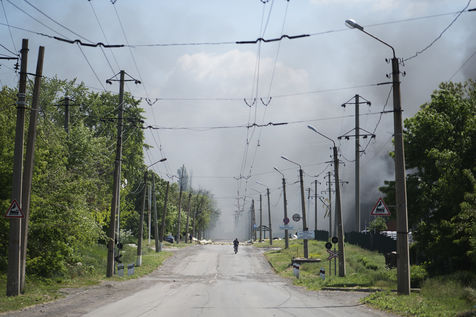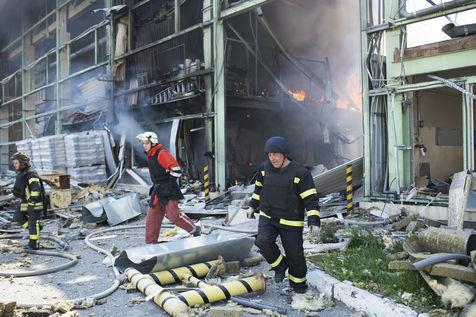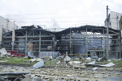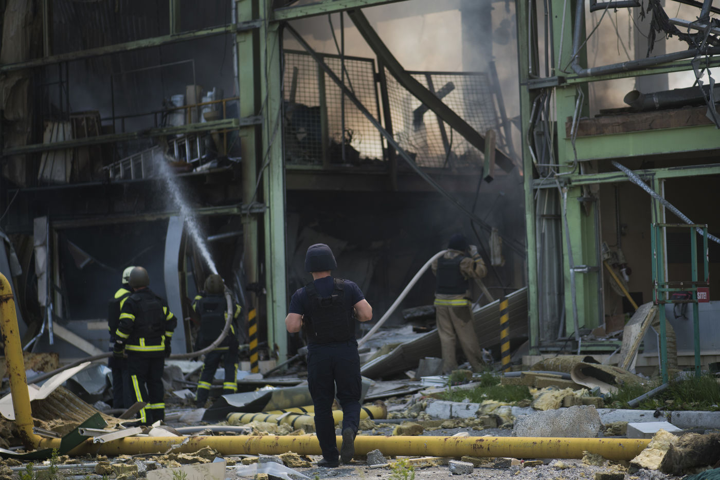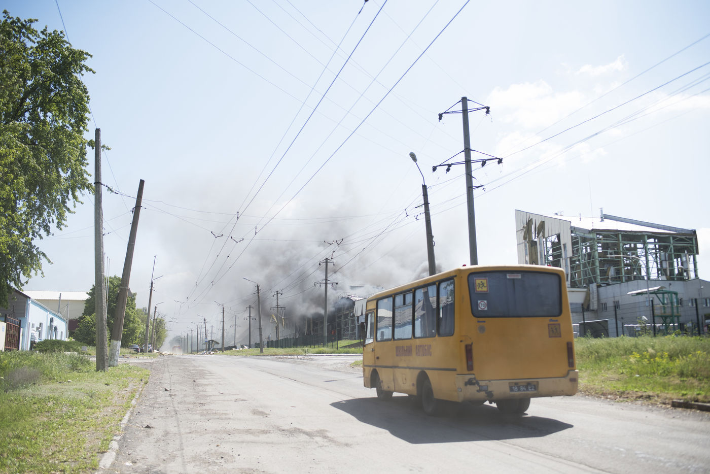 À l'Est de l'Ukraine, les russes essayent d'avancer vers Bakhmout. Ce 27 mai 2022 plusieurs missiles ont touché des bâtiments civils de la ville comme cet entrepôt dans la matinée.