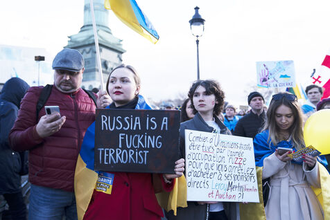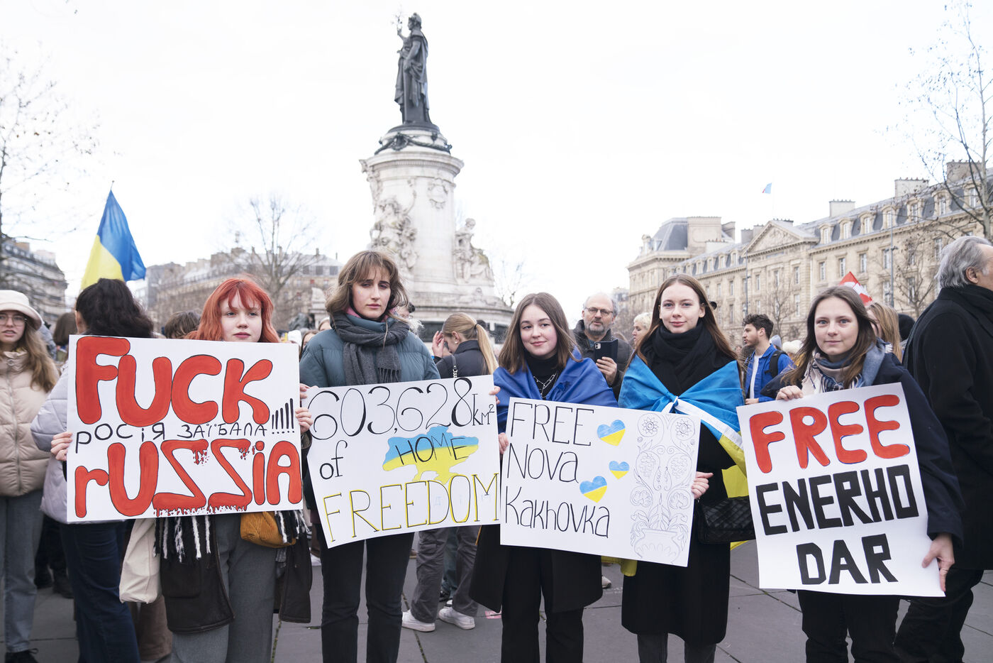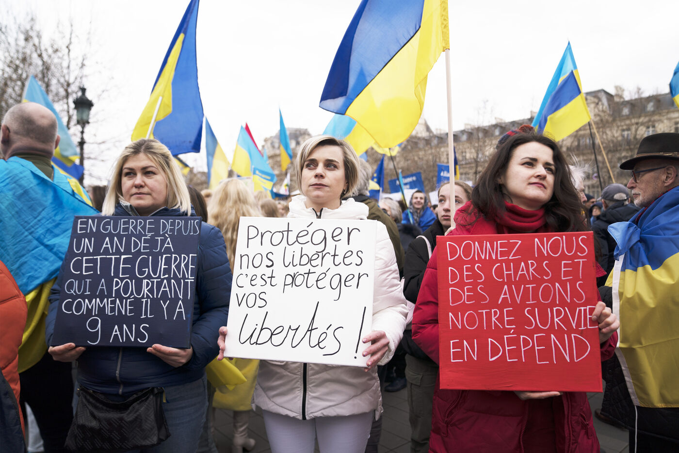 Demonstration to commemorate the one year anniversary of the attacks of February 24, 2022 in Ukraine - Paris