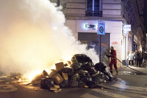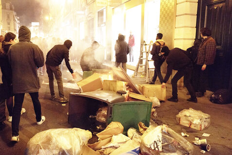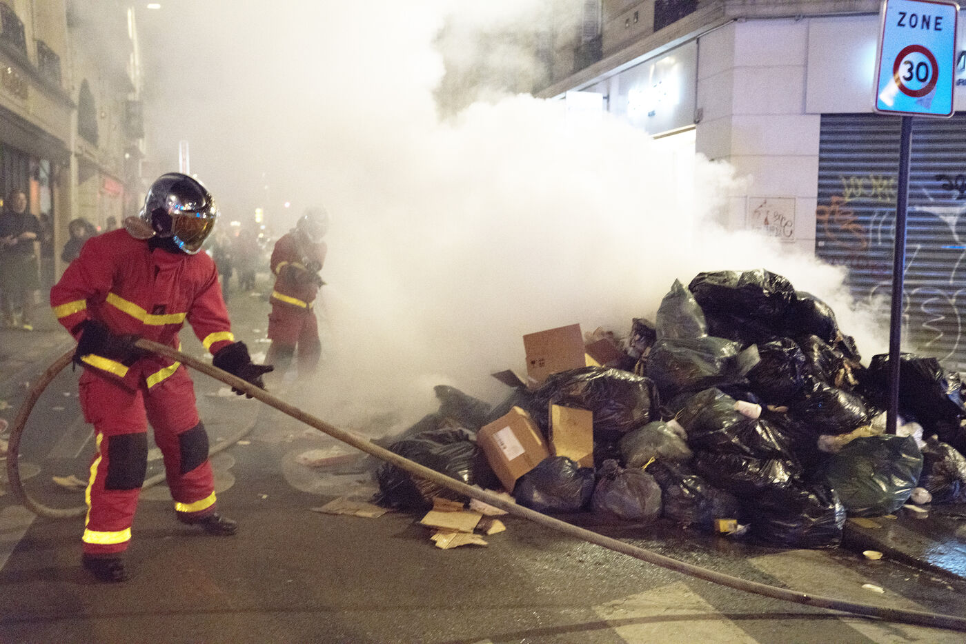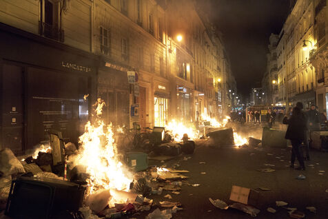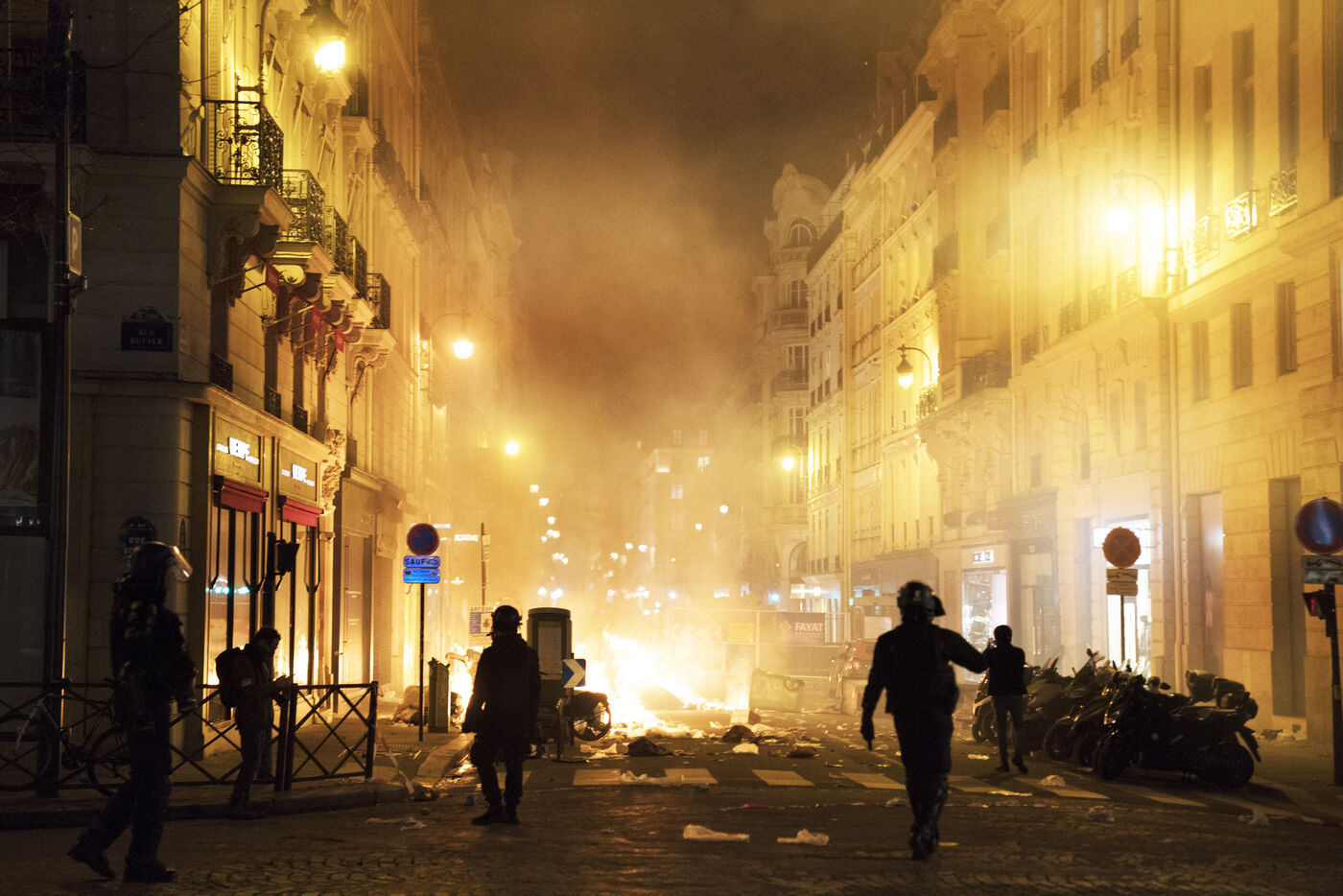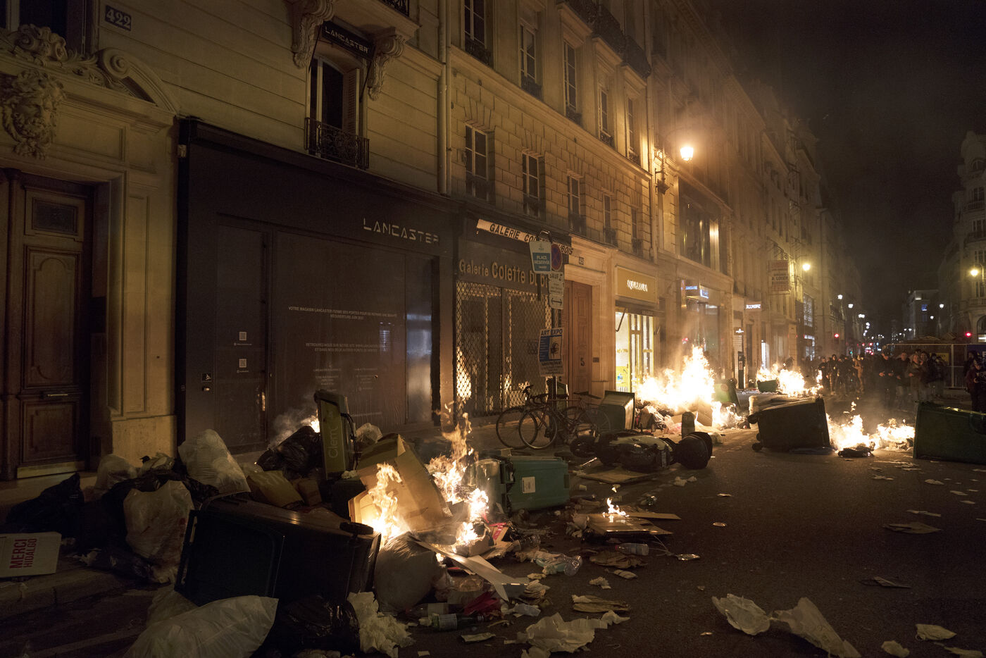 Wild demonstration after the announcement of the use of the 49.3 in the Assembly for the pension reform. Hundreds of fires were lit in the streets of Paris. The demonstrators who had gathered in front of the National Assembly took the street towards the Elysée. The demonstration first stopped at Place de la Concorde before turning into a wild demonstration in the streets of Paris. Thursday, March 16, 2023.