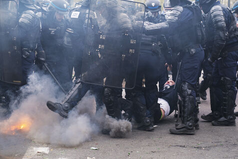 General strike and demonstration against the pension reform and the 49.3. Demonstrators took to the streets of Paris again, for this last day of mobilization before the decision of the Constitutional Council. The demonstration started from Opéra to Place de la Bastille. Numerous tear gas and police charges. Thursday, April 13, 2023.