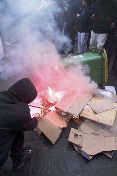 Strike of April 13: Blockade of the Colbert high school and demonstration of the high school students against the reform of the pensions and the 49.3